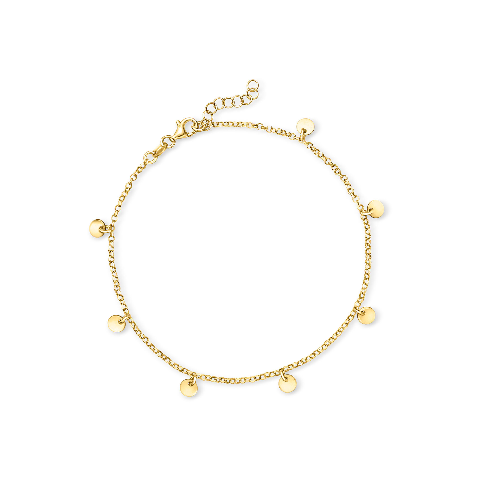 Italian 18kt Gold Vermeil Disc Station Anklet. 9″