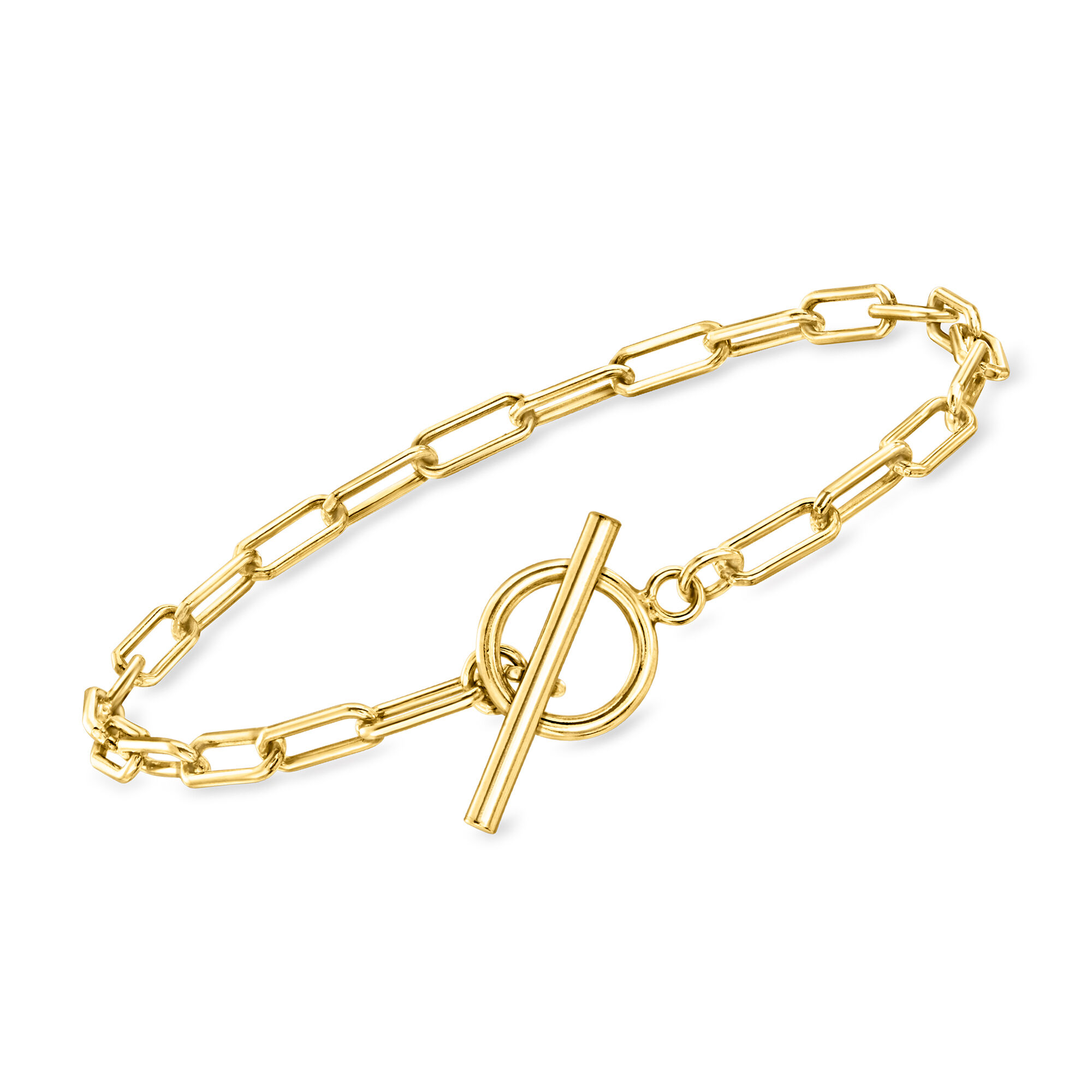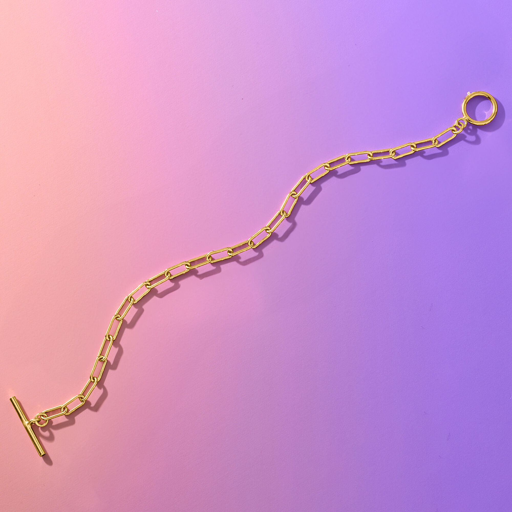 Italian 18kt Gold Vermeil Paper Clip Link Toggle Bracelet