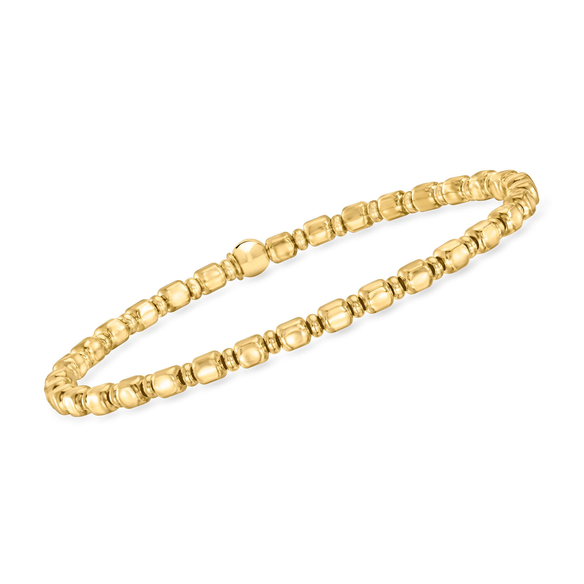 Italian 18kt Gold Vermeil Square and Round Bead Stretch Bracelet