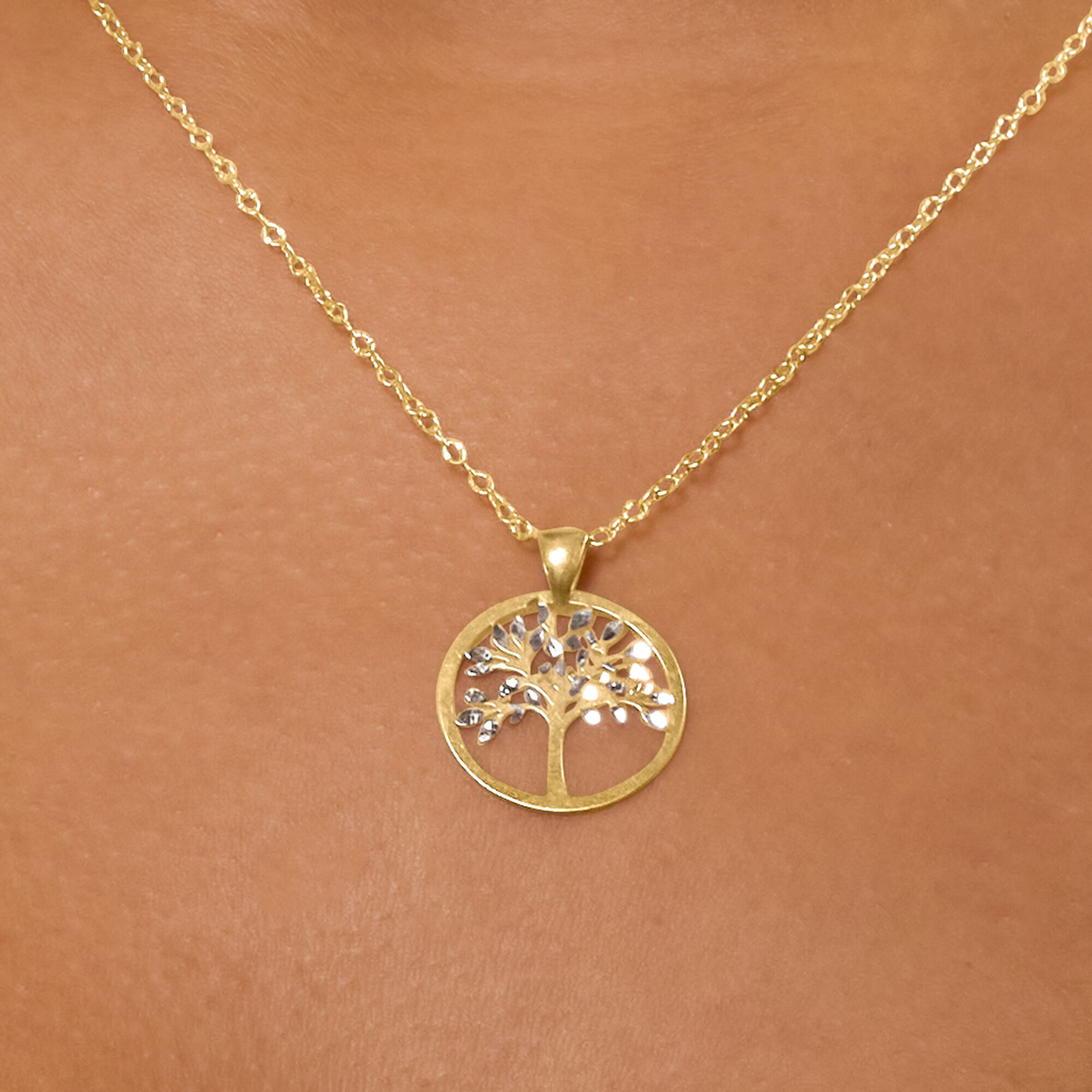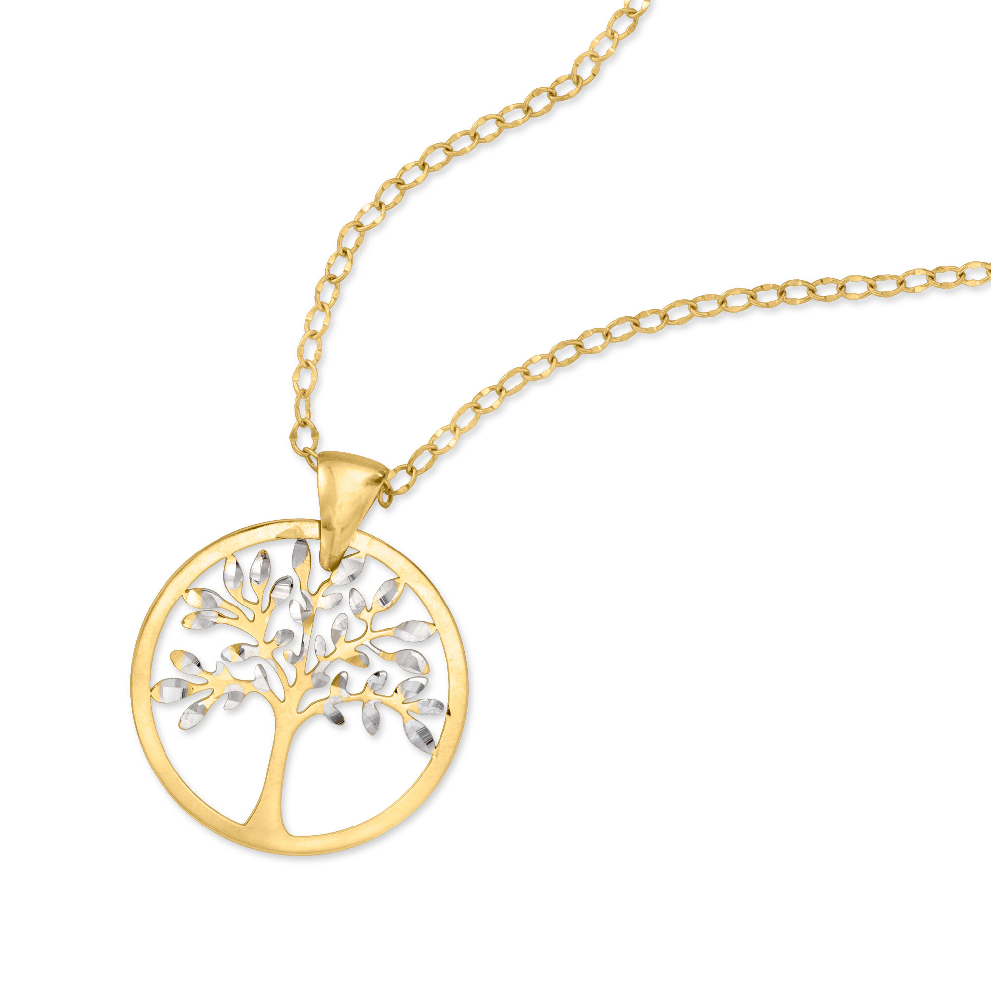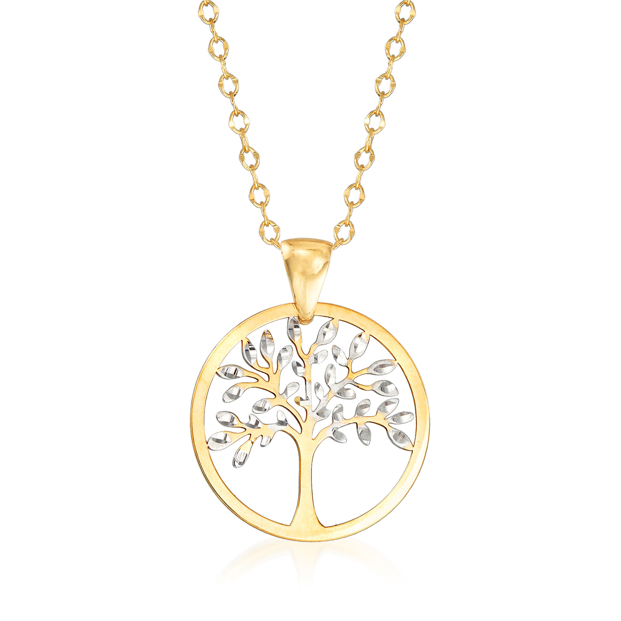 Italian 18kt Two-Tone Gold Cut-Out Tree of Life Pendant Necklace. 17.5″