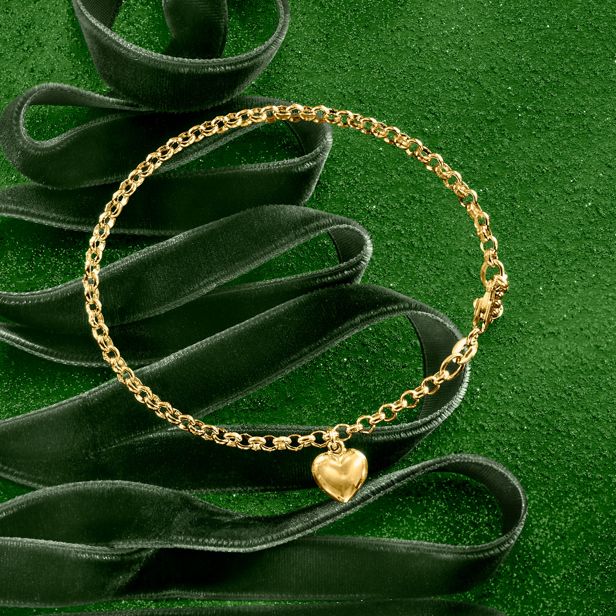 Italian 18kt Yellow Gold Heart Charm Bracelet. 6.25″