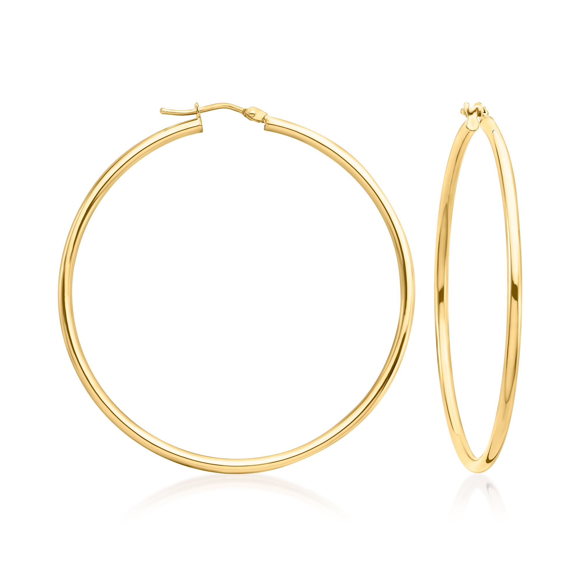 Italian 2mm 14kt Yellow Gold Hoop Earrings. 2″