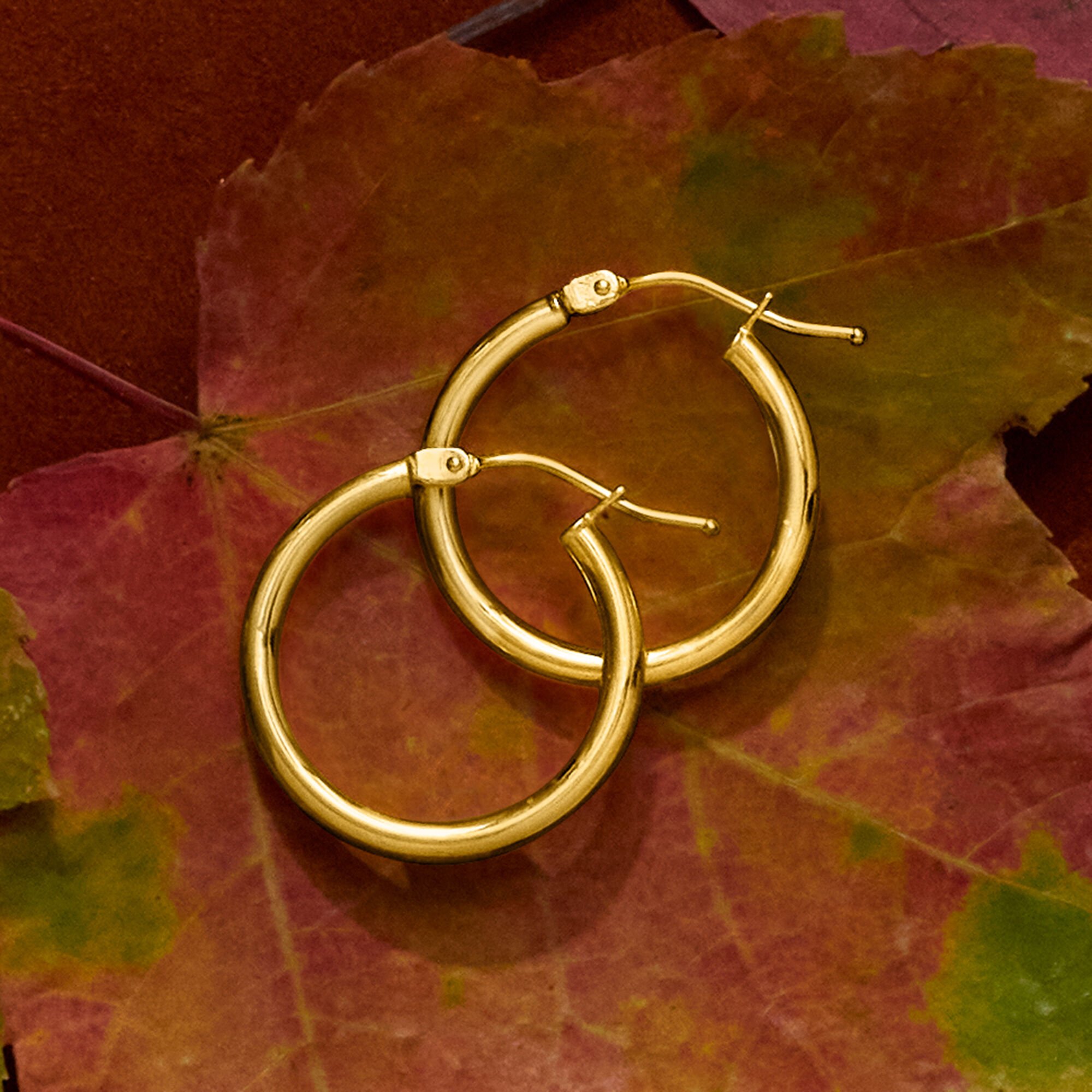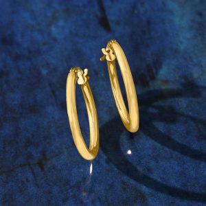Italian 2mm 18kt Yellow Gold Hoop Earrings. 3/4″