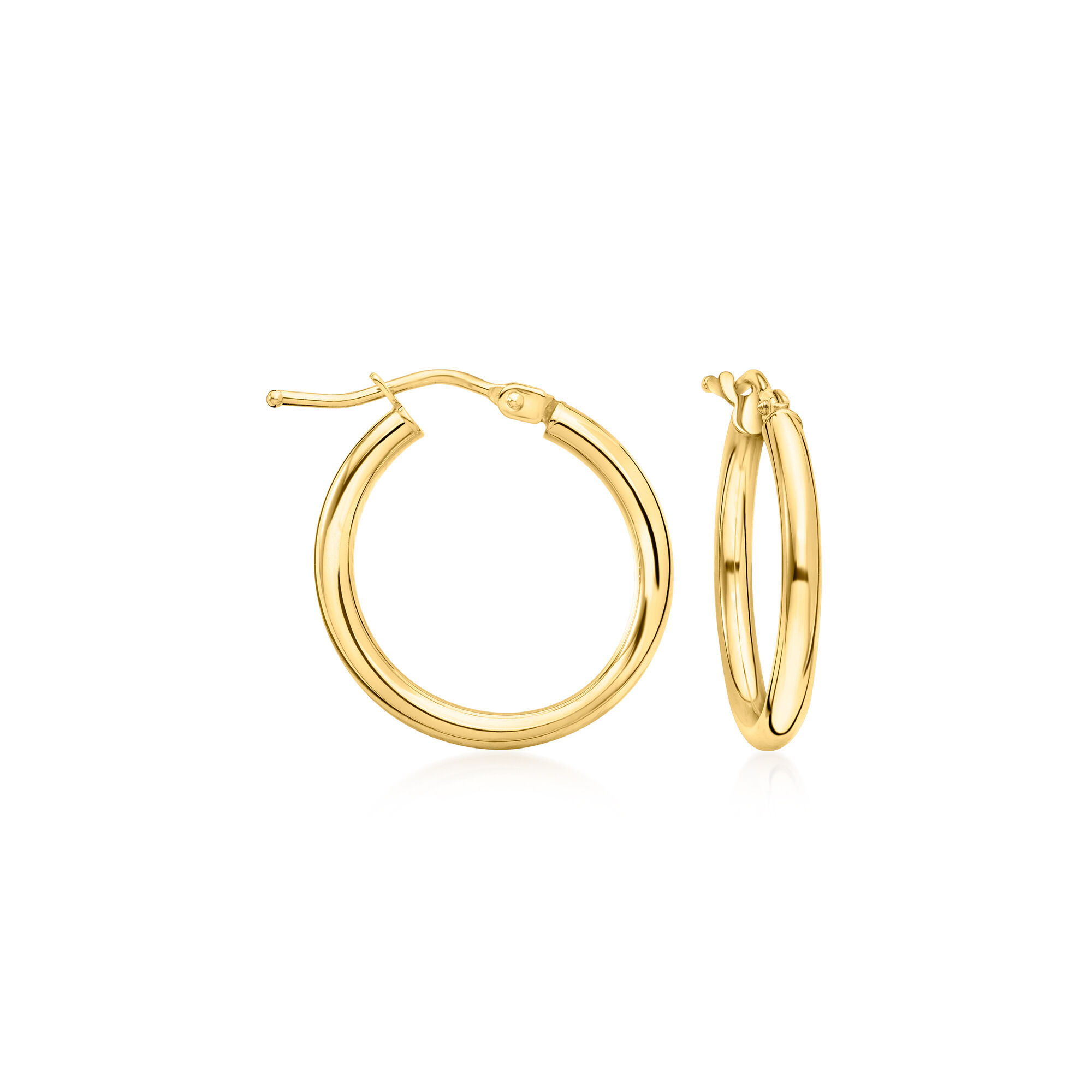 Italian 2mm 18kt Yellow Gold Hoop Earrings. 3/4″