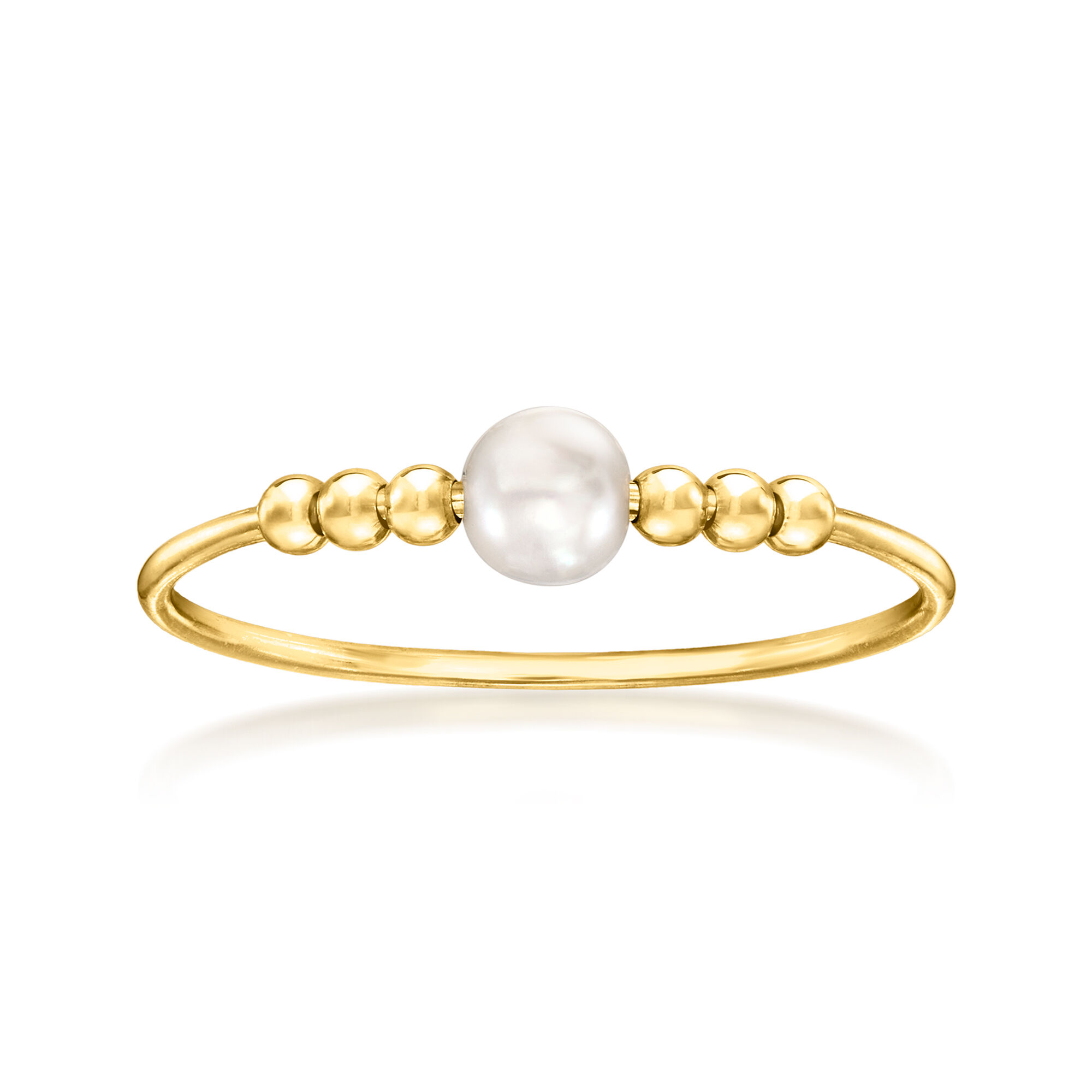 Italian 3.5-4mm Cultured Pearl and Bead Ring in 14kt Yellow Gold