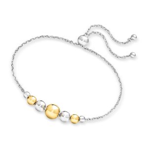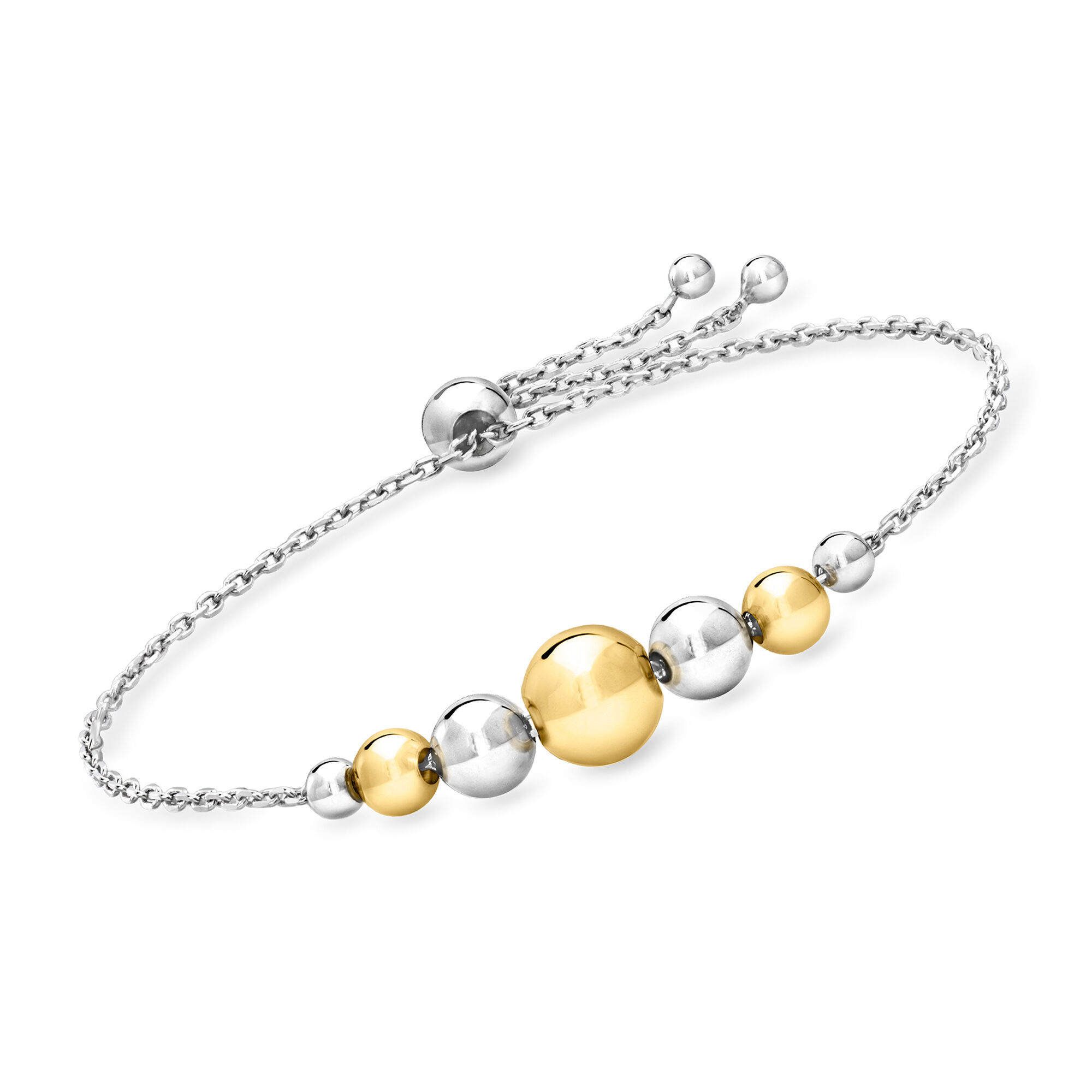 Italian 3.5-8mm Sterling Silver and 18kt Gold Over Sterling Graduated Bead Bolo Bracelet
