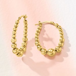 Italian 3-6mm 18kt Gold Over Sterling Bead Oval Hoop Earrings. 1 1/8″
