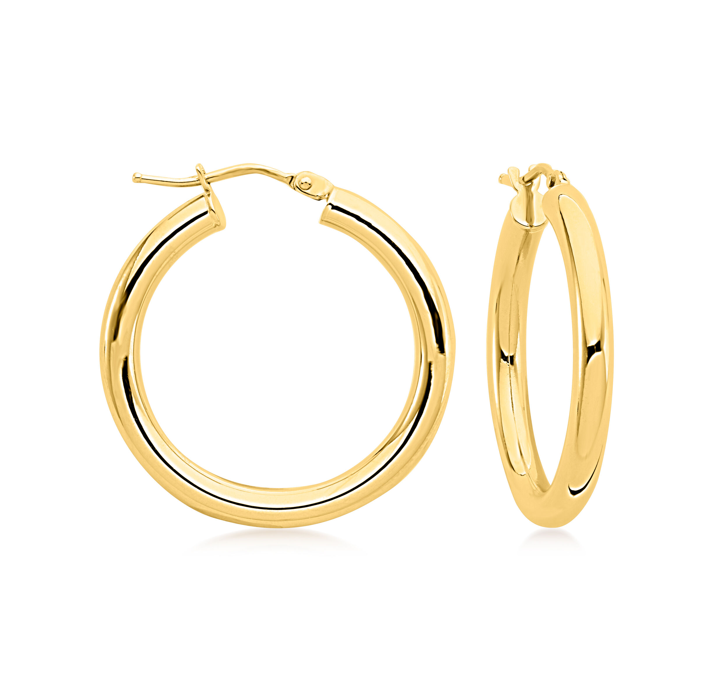 Italian 3mm 14kt Yellow Gold Hoop Earrings. 1″