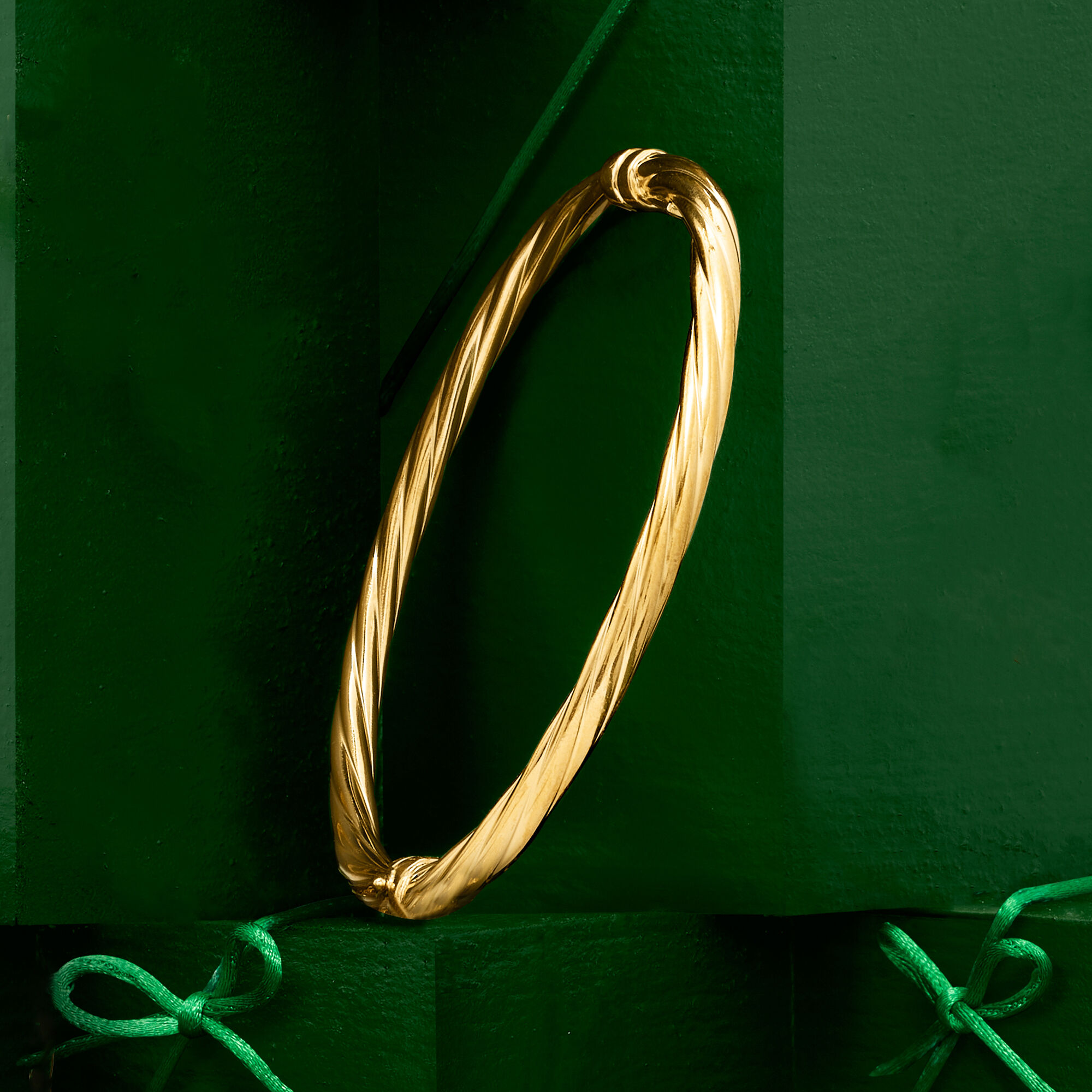 Italian 4mm 18kt Gold Over Sterling Twisted Bangle Bracelet