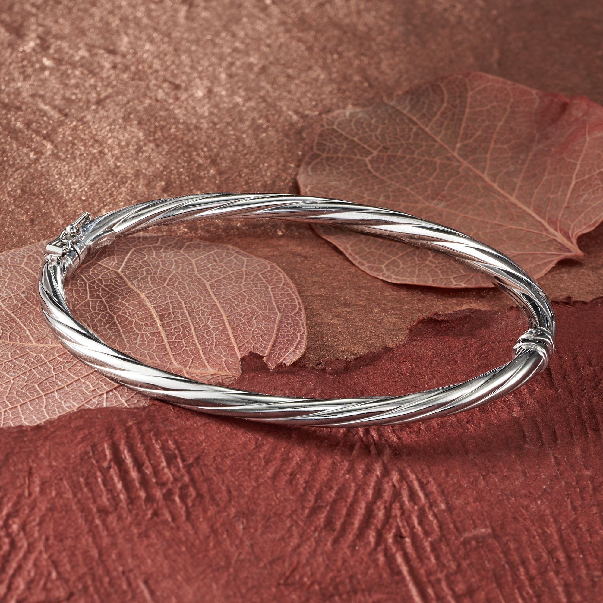 Italian 4mm Sterling Silver Twisted Bangle Bracelet