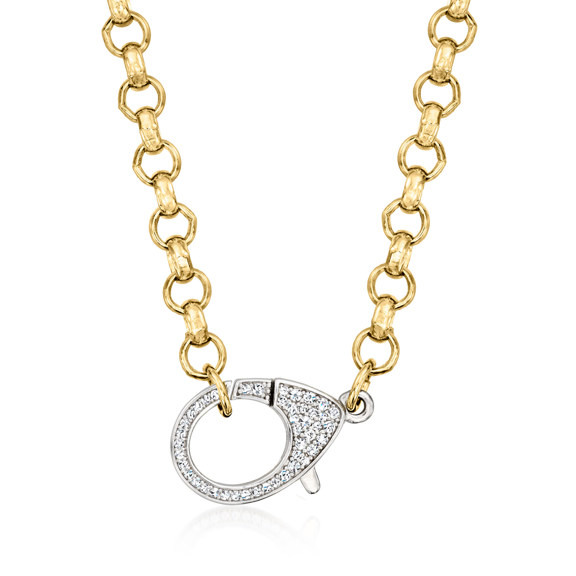 Italian .50 ct. t.w. CZ Oversized Lobster Clasp Necklace in Sterling Silver and 18kt Gold Over Sterling