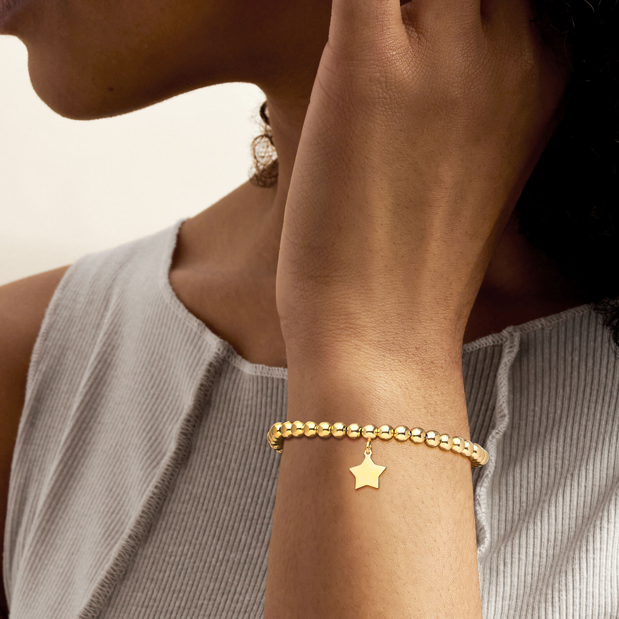Italian 5mm 18kt Gold Vermeil Bead Stretch Bracelet with Star Charm