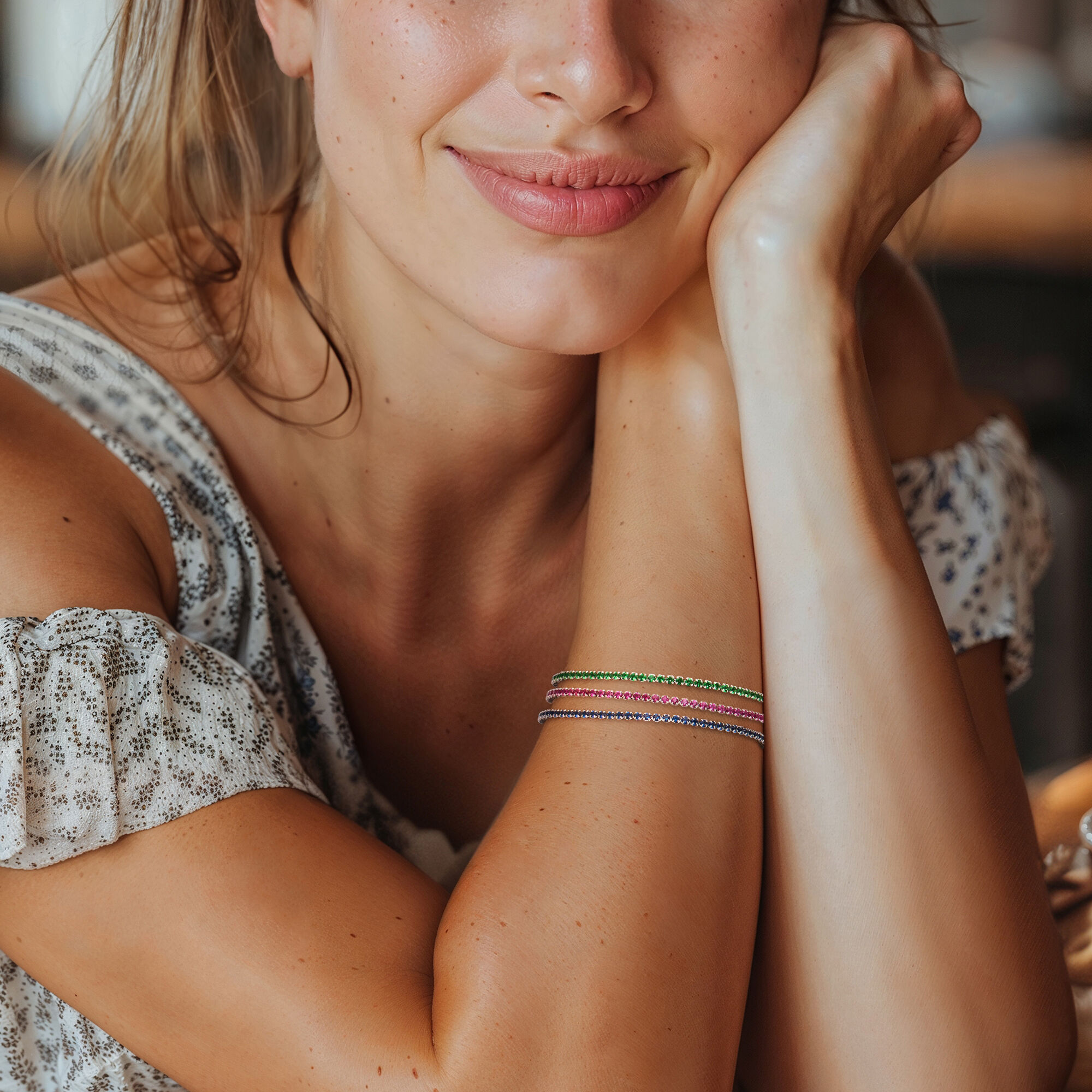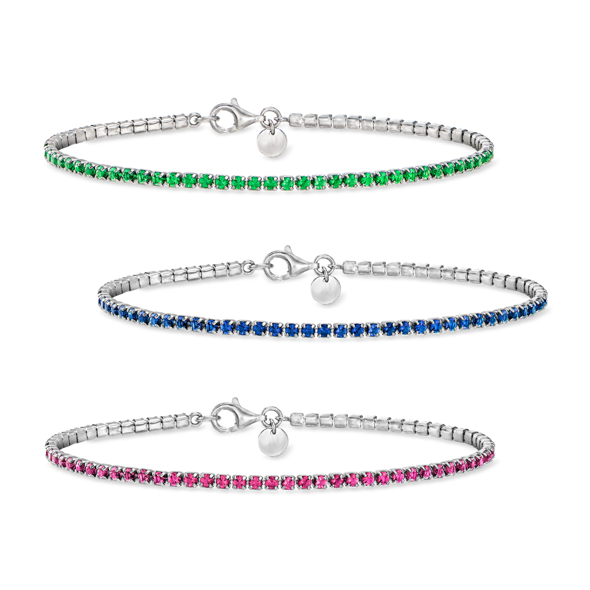 Italian 6.00 ct. t.w. Simulated Emerald, Ruby and Sapphire Jewelry Set: Three Tennis Bracelets in Sterling Silver