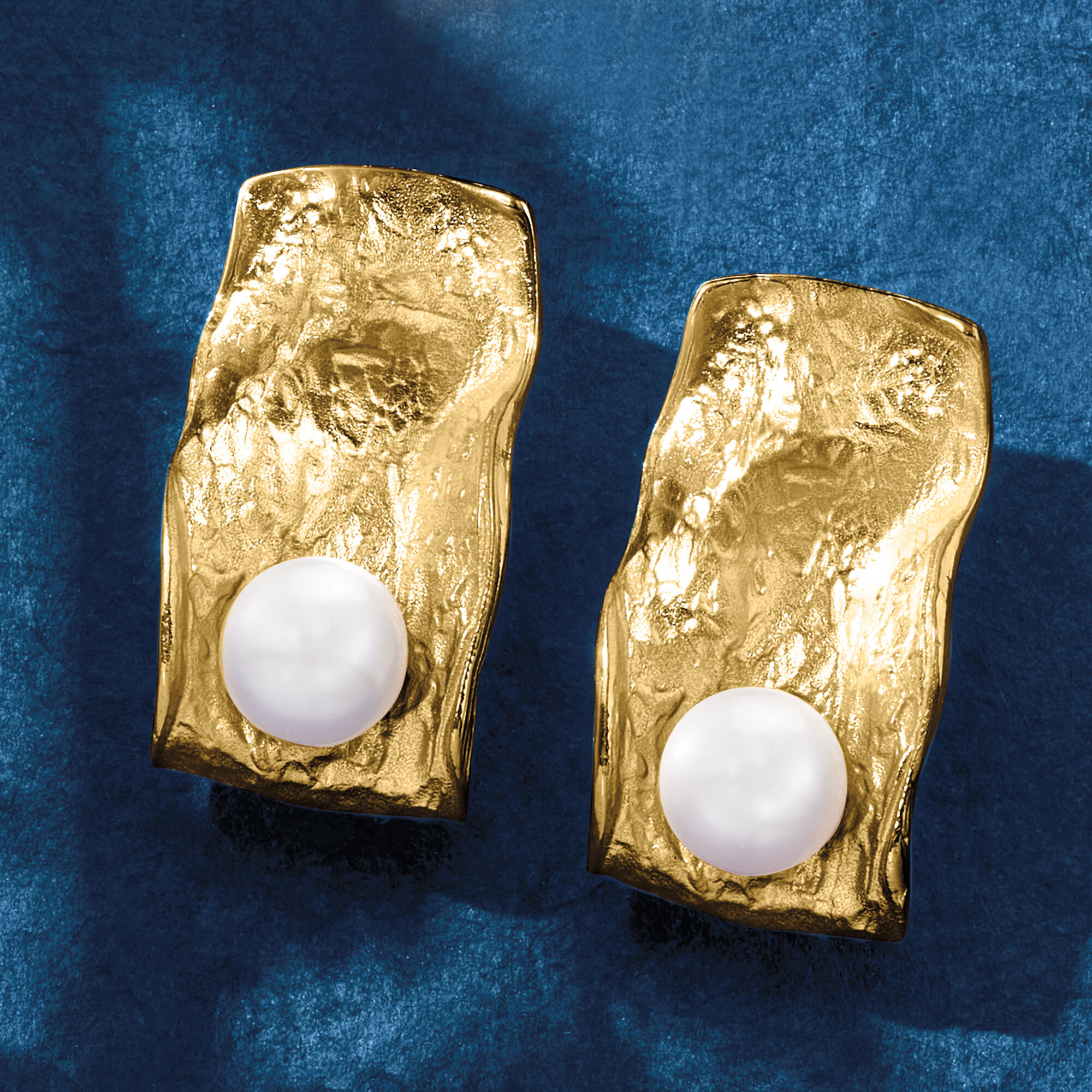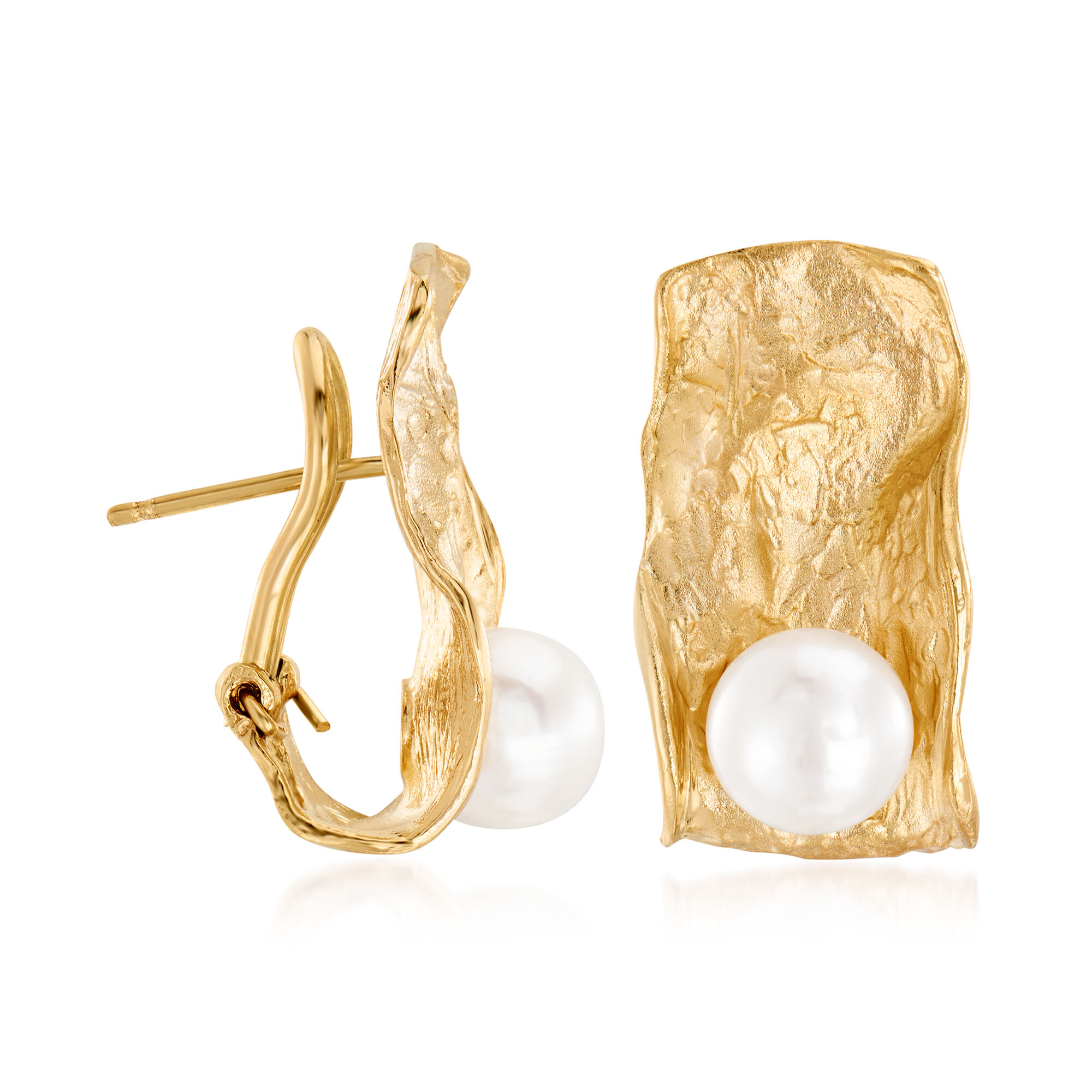 Italian 6.5-7mm Cultured Pearl Sculptural Earrings in 18kt Gold Over Sterling