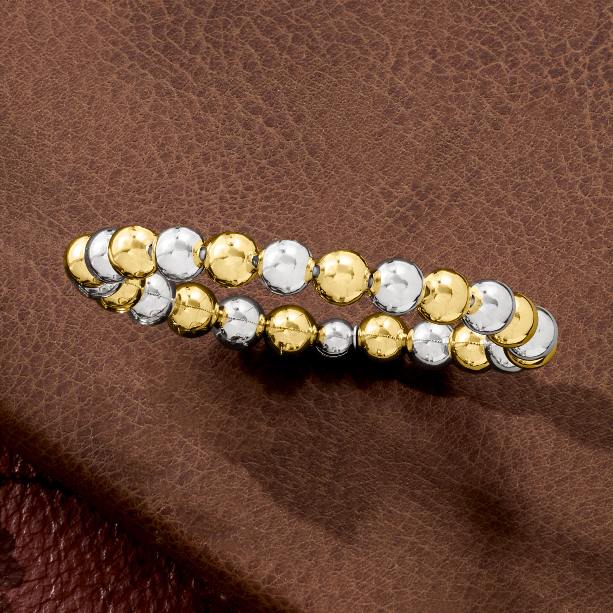 Italian 8mm Sterling Silver and 18kt Gold Over Sterling Bead Stretch Bracelet