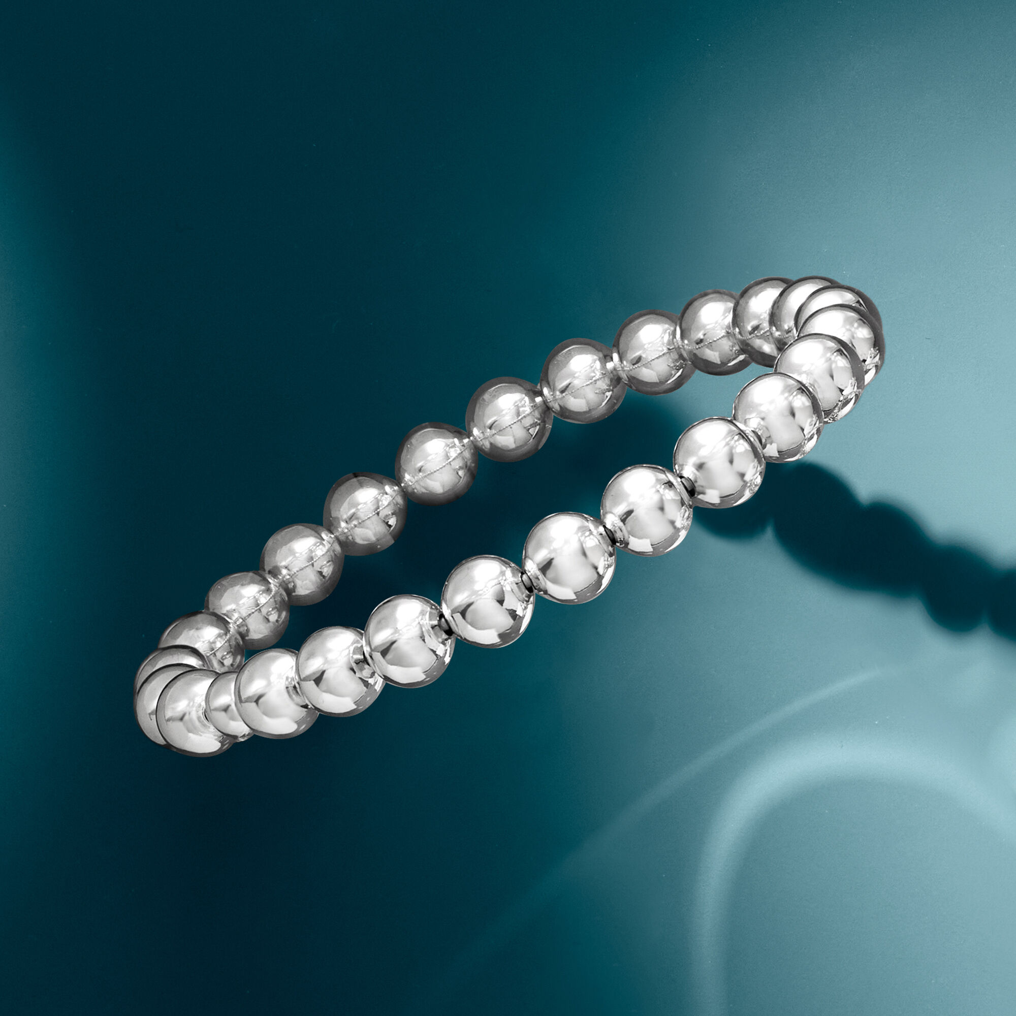 Italian 8mm Sterling Silver Bead Stretch Bracelet