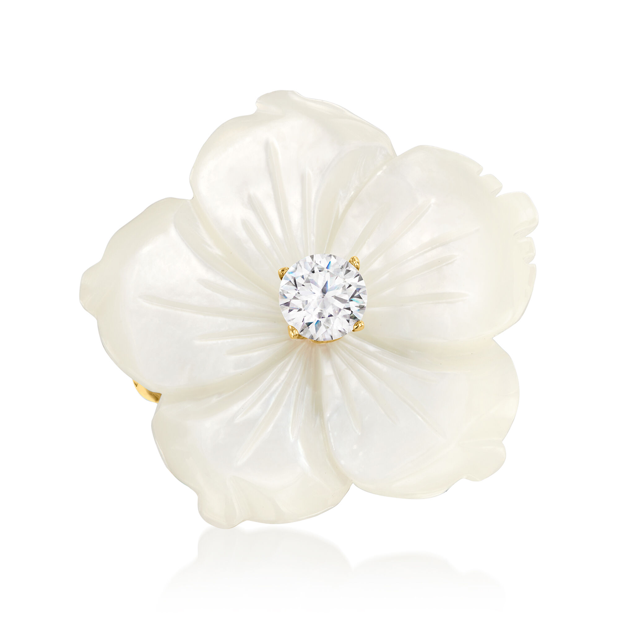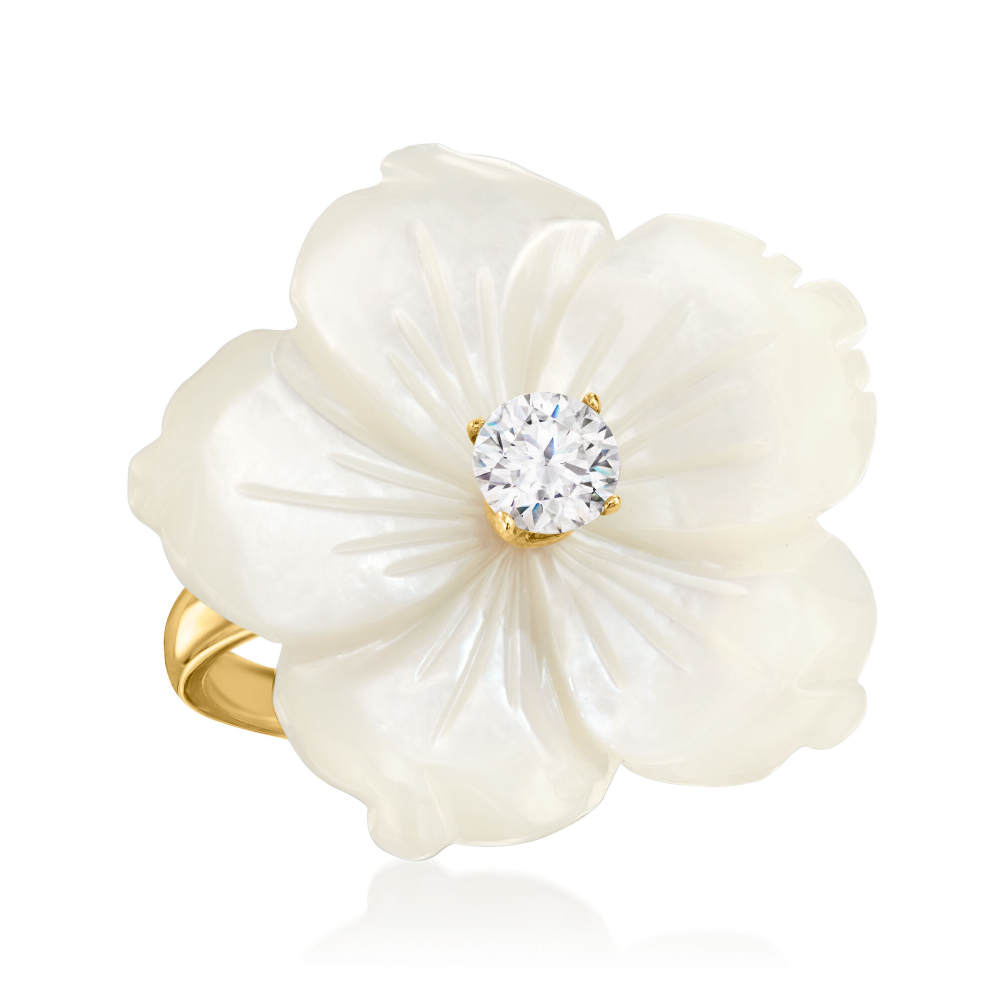 Italian Mother-of-Pearl and .30 Carat CZ Flower Ring in 18kt Gold Over Sterling
