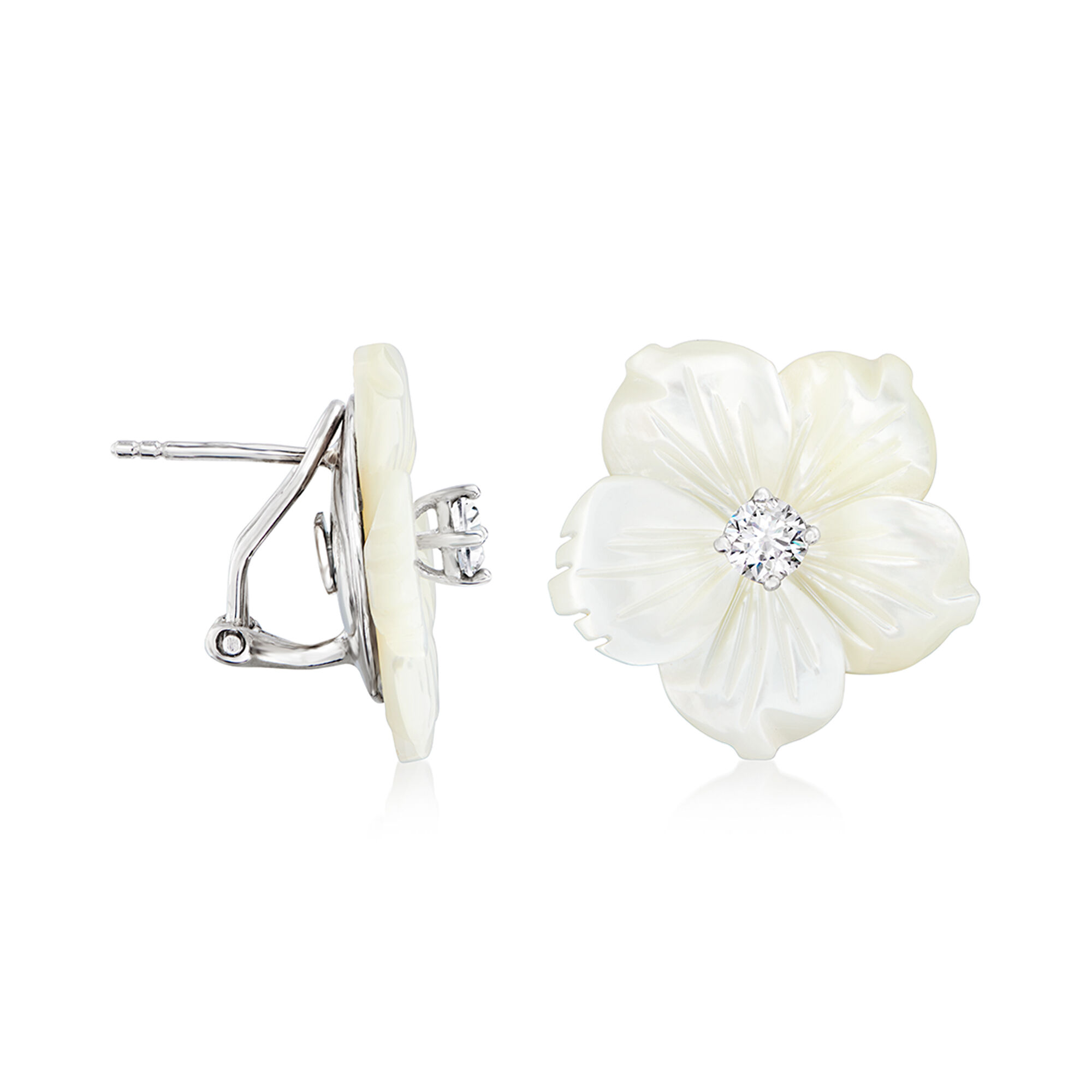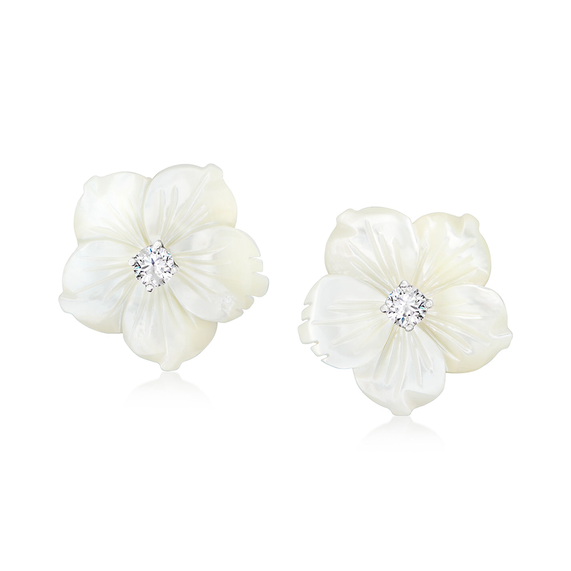 Italian Mother-of-Pearl and .40 ct. t.w. CZ Flower Earrings in Sterling Silver