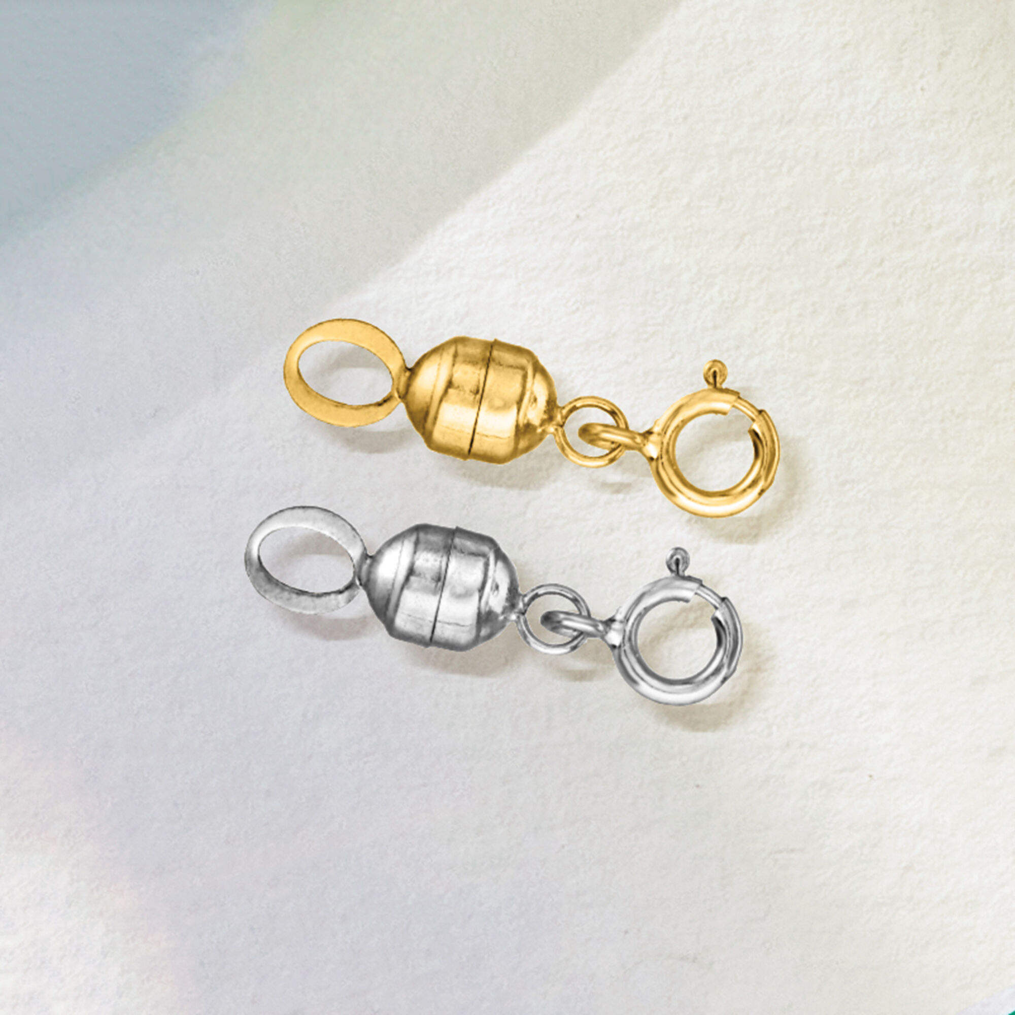 Italian Set of Two Small Magnetic Clasp Converters: 14kt Yellow Gold and 14kt White Gold