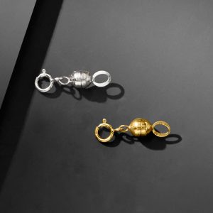 Italian Set of Two Small Magnetic Clasp Converters: 14kt Yellow Gold and 14kt White Gold