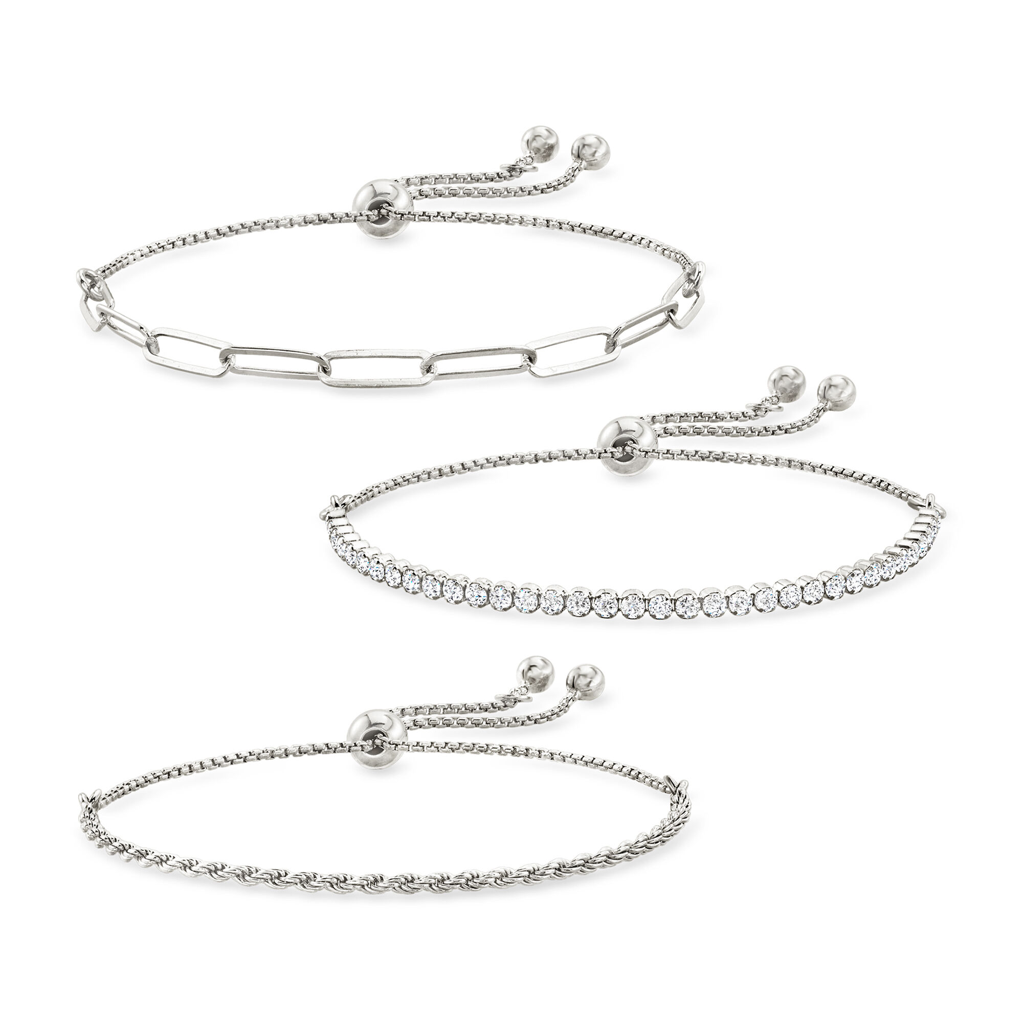 Italian Sterling Silver and 1.58 ct. t.w. CZ Jewelry Set: Three Bolo Bracelets