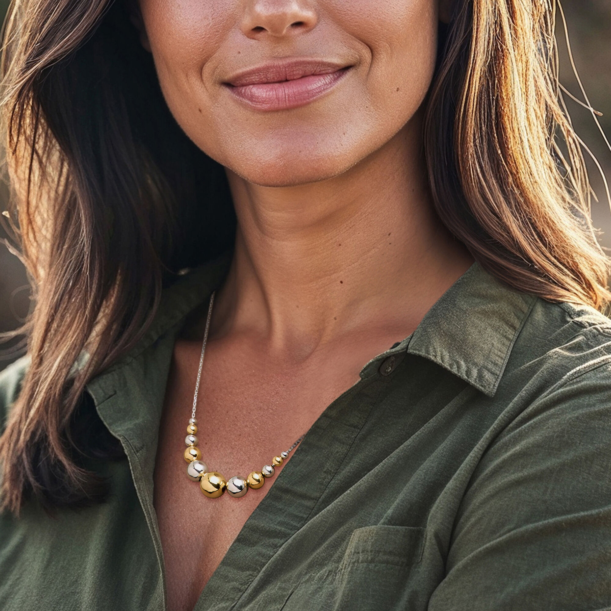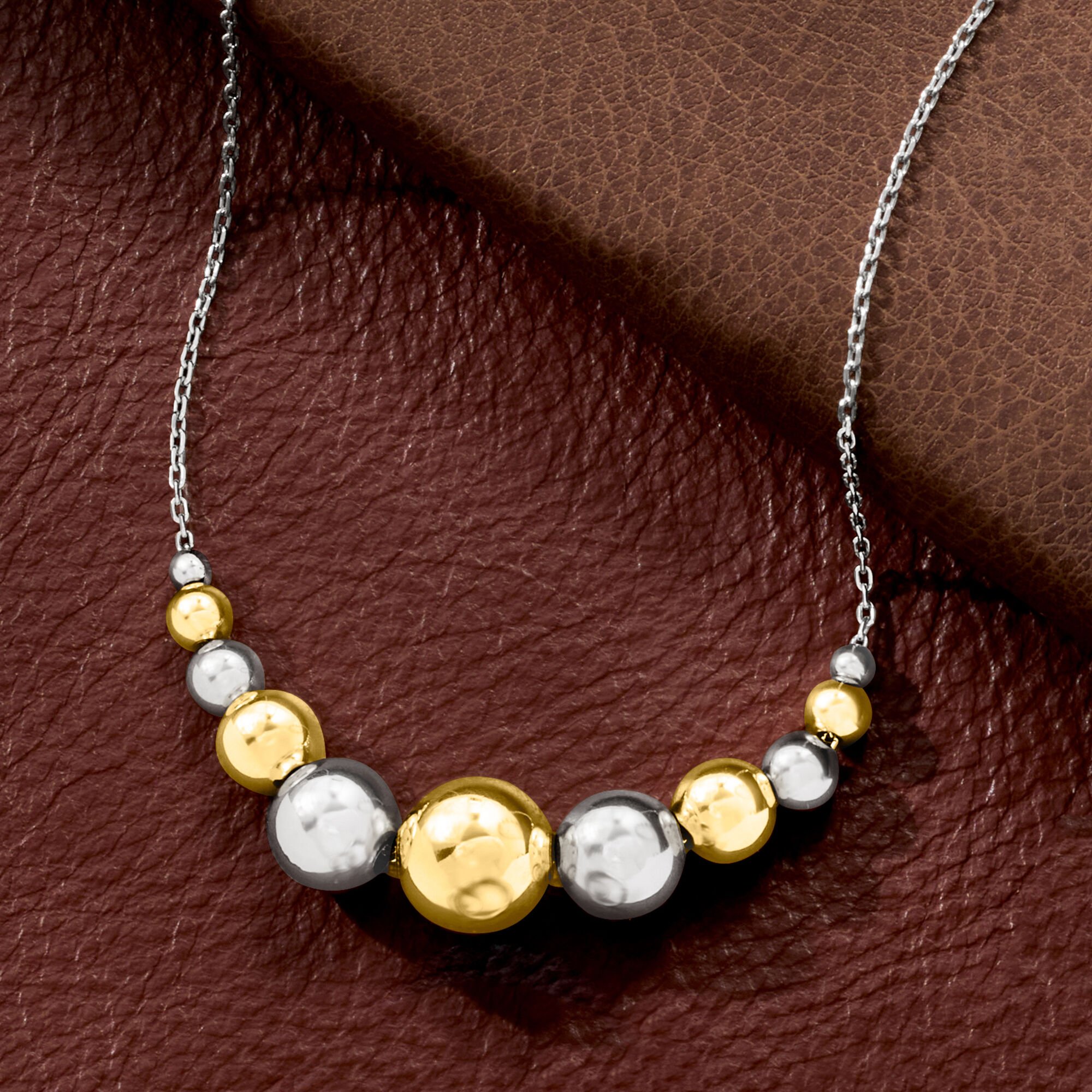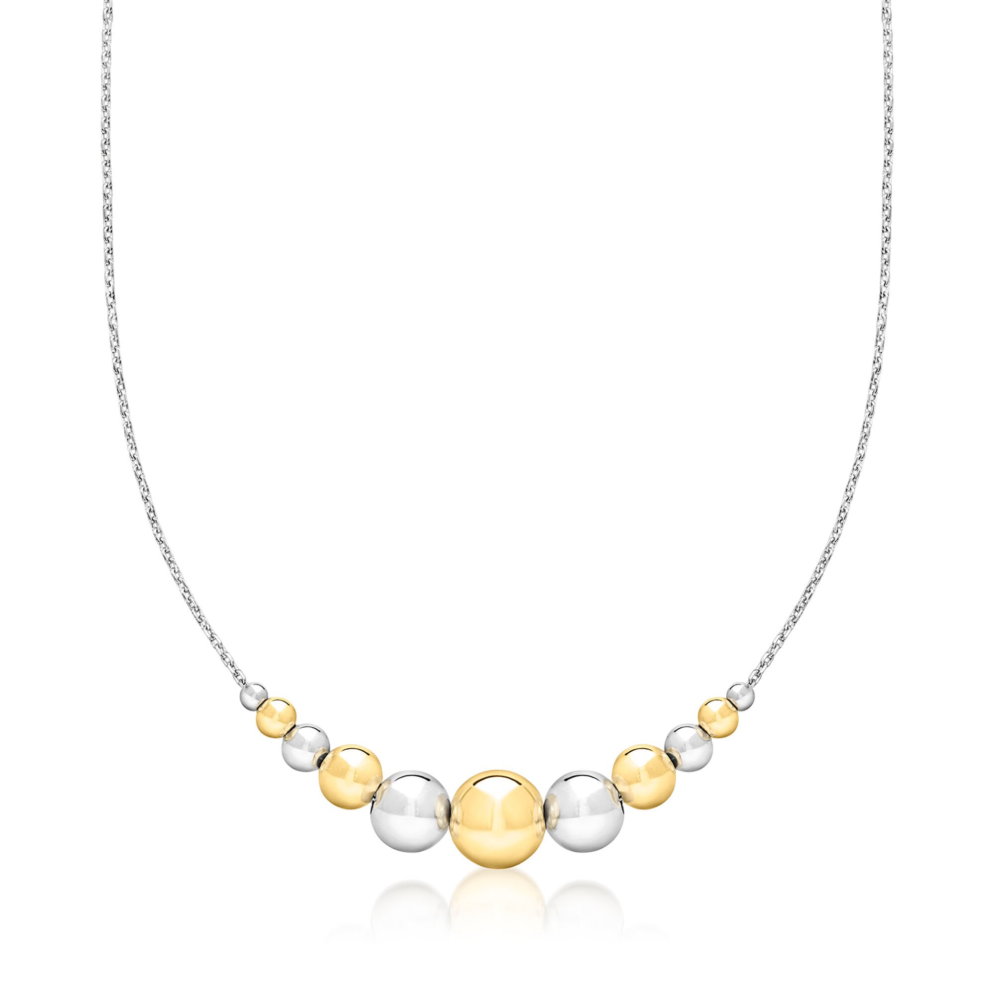 Italian Sterling Silver and 18kt Gold Over Sterling Graduated Bead Cable-Chain Necklace. 18″