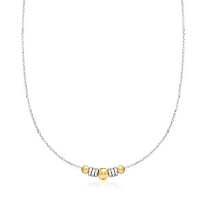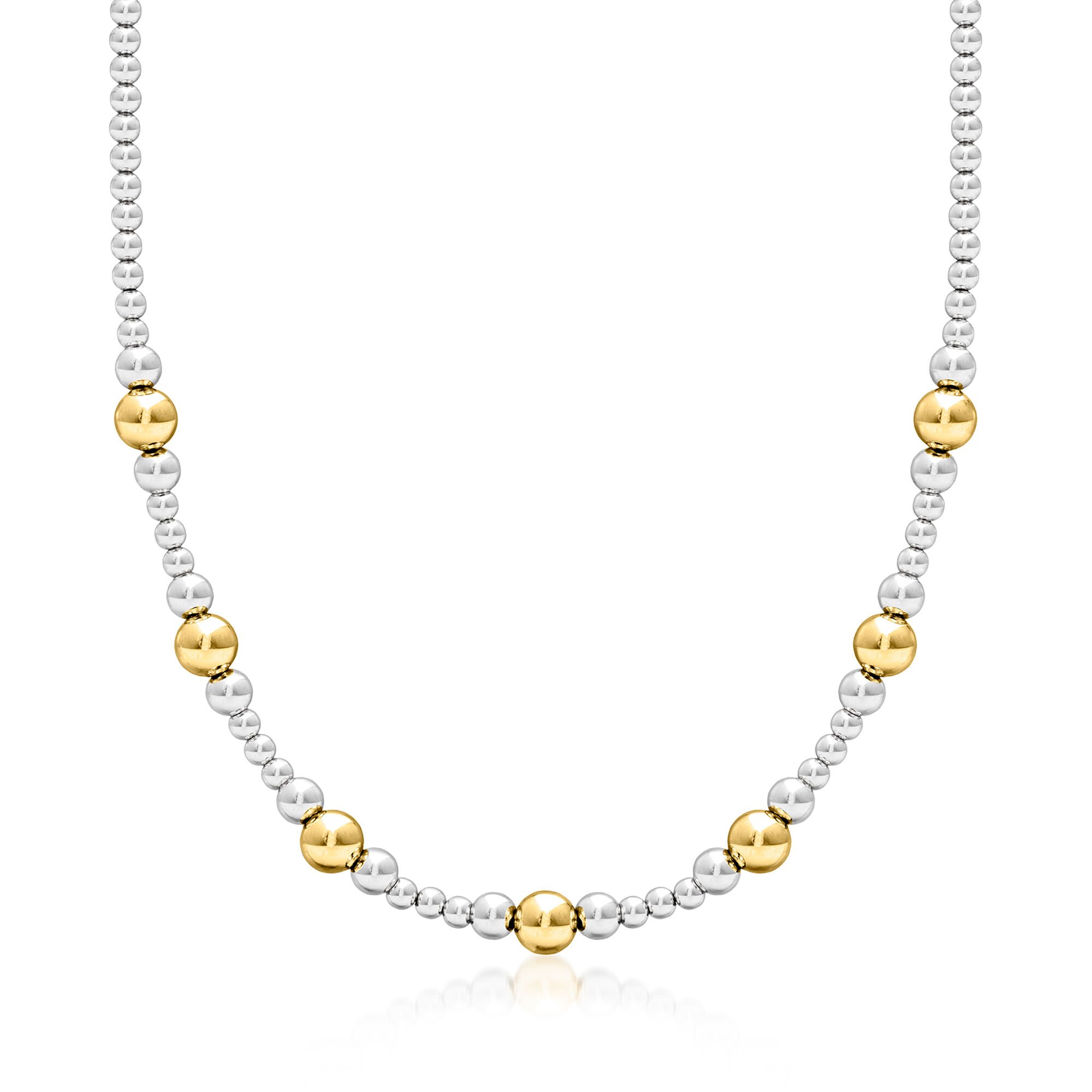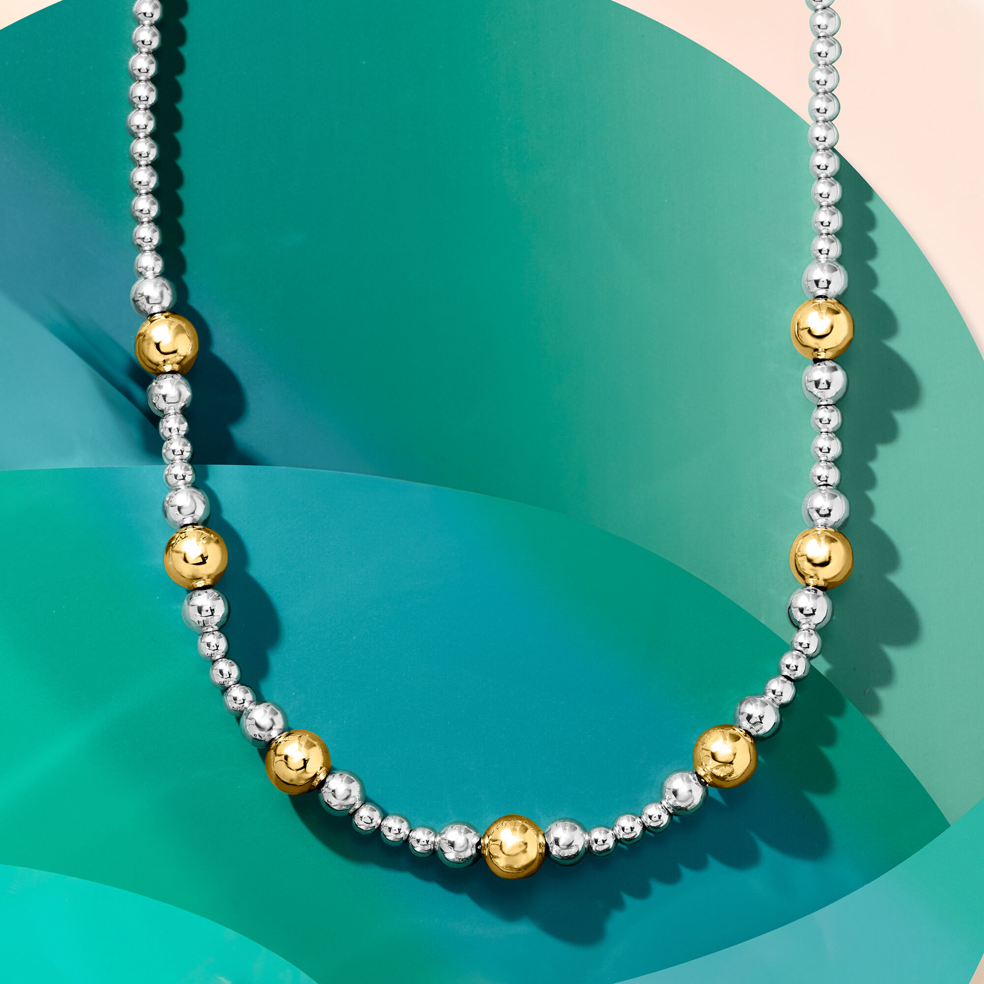 Italian Sterling Silver and 18kt Gold Over Sterling Graduated Bead Necklace