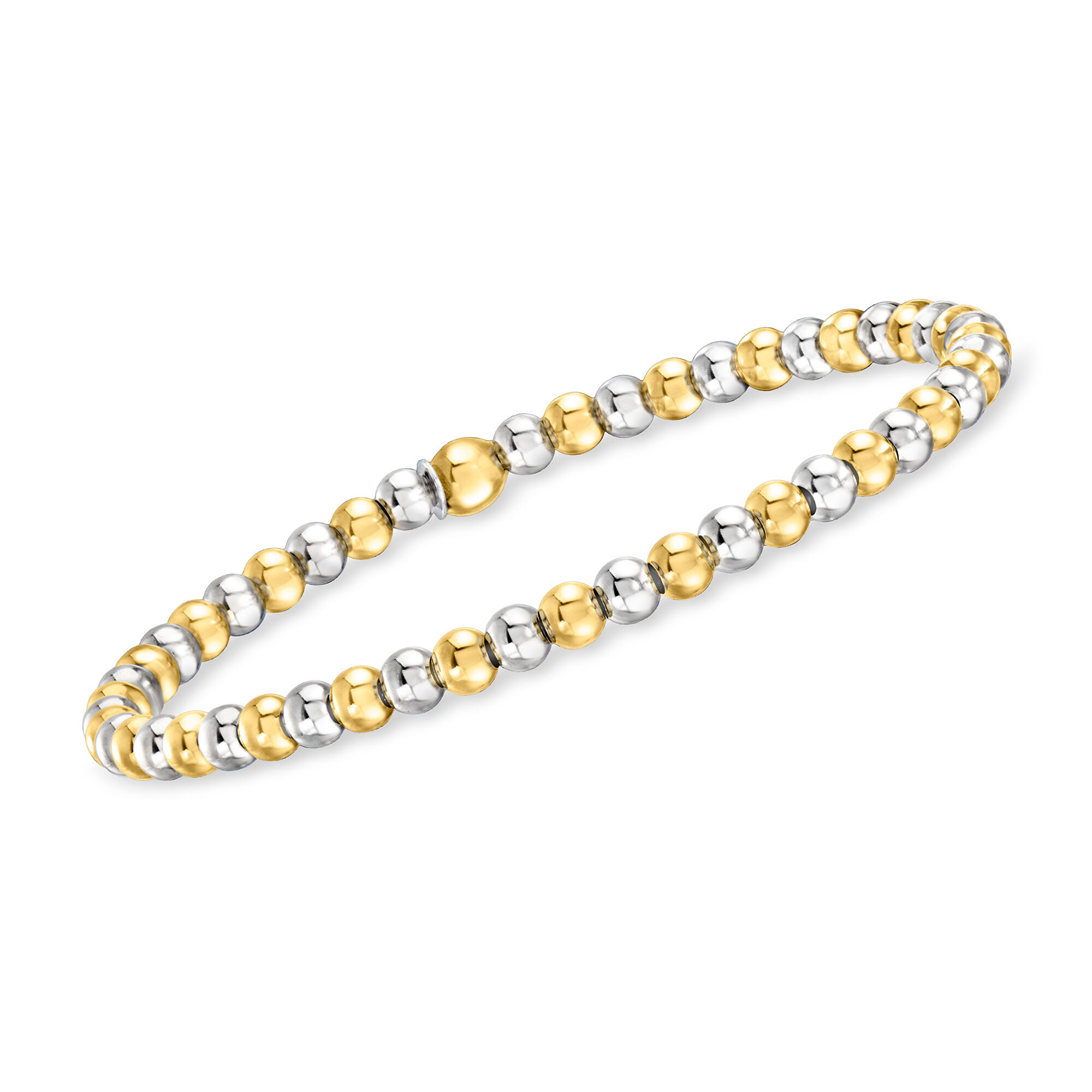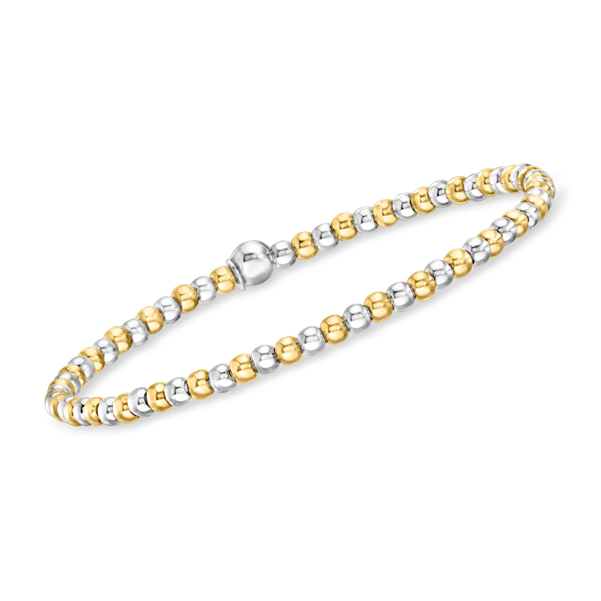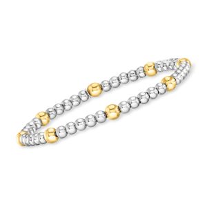 Italian Sterling Silver and 18kt Gold Vermeil Jewelry Set: Three 3-5mm Bead Stretch Bracelets