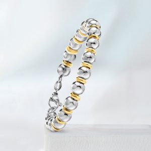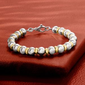 Italian Sterling Silver and 22kt Gold Over Sterling Bead Bracelet