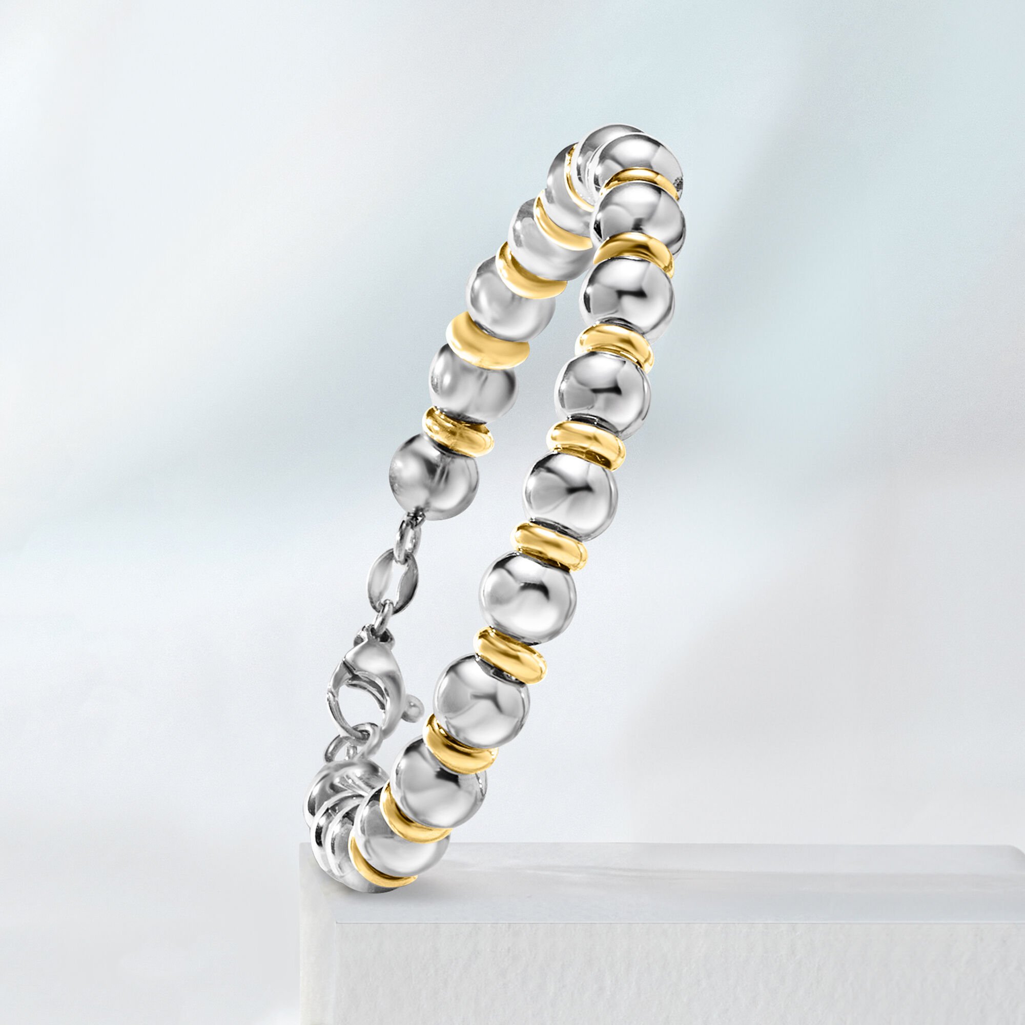 Italian Sterling Silver and 22kt Gold Over Sterling Bead Bracelet