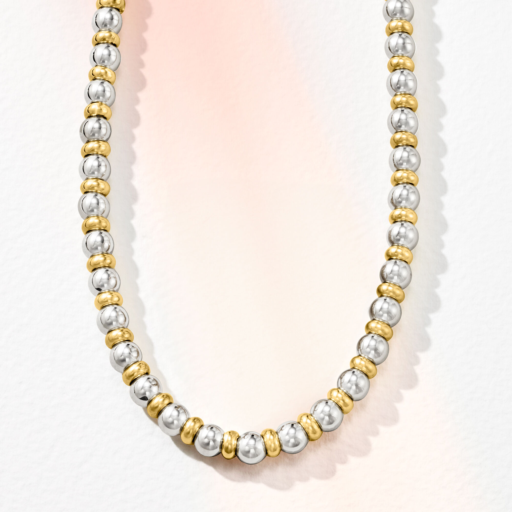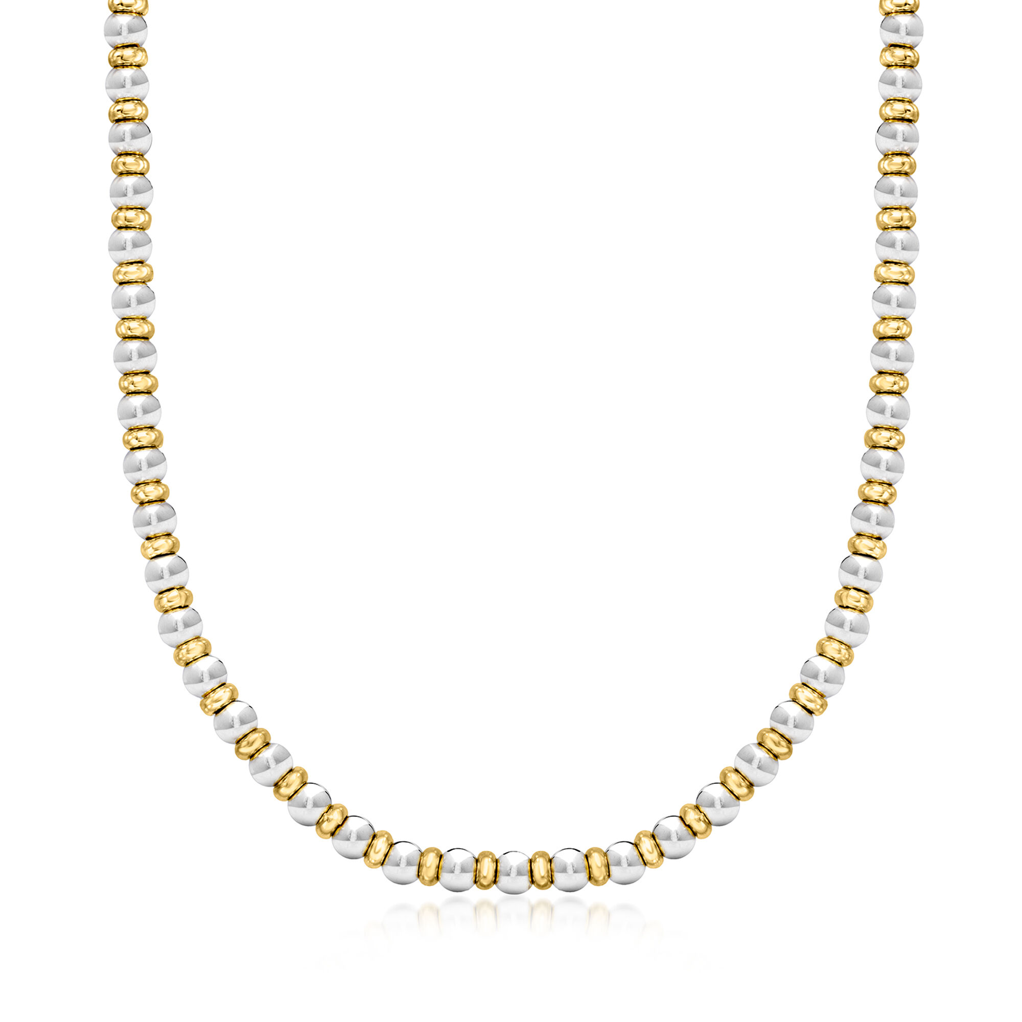 Italian Sterling Silver and 22kt Gold Over Sterling Bead Necklace