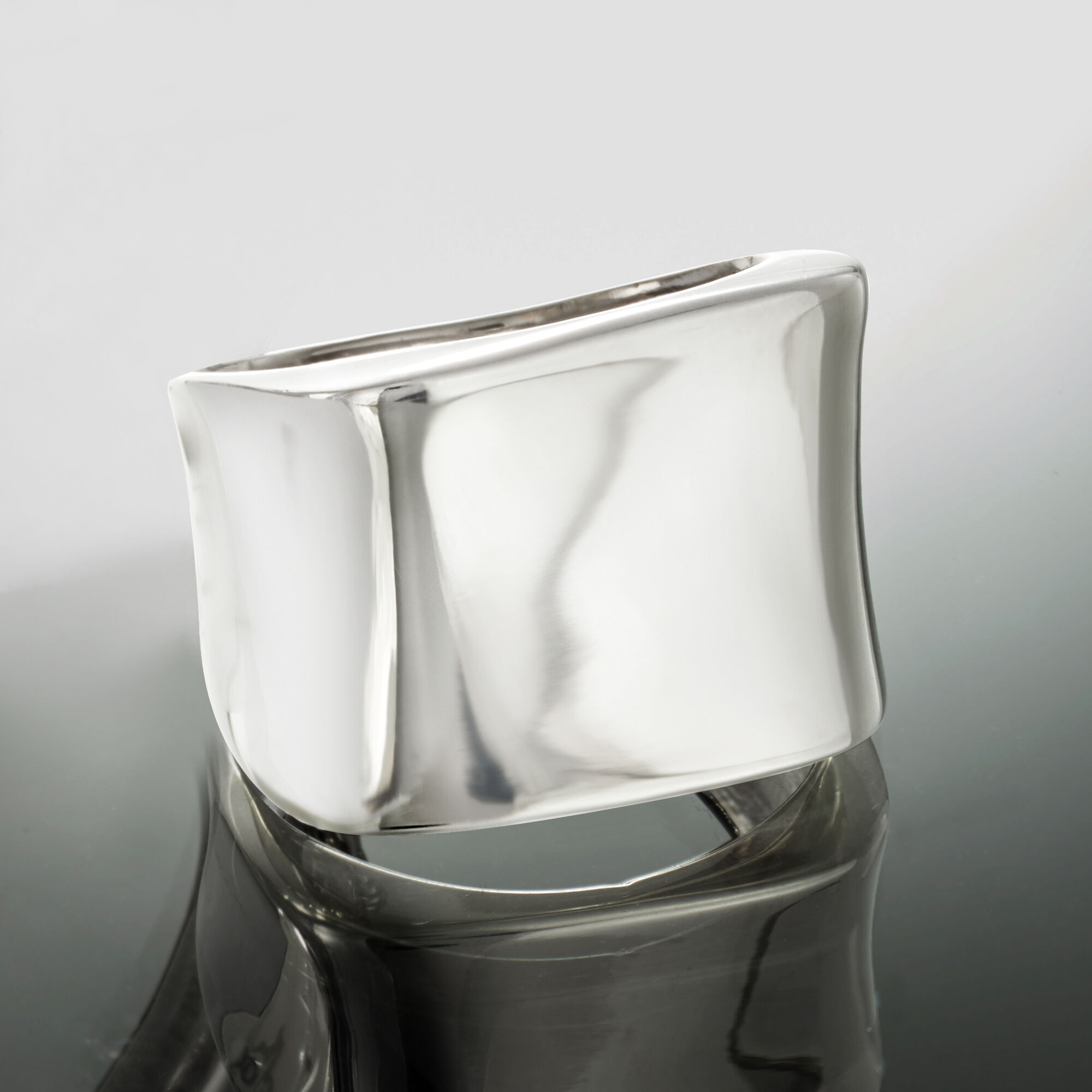 Italian Sterling Silver Asymmetrical Square-Top Ring