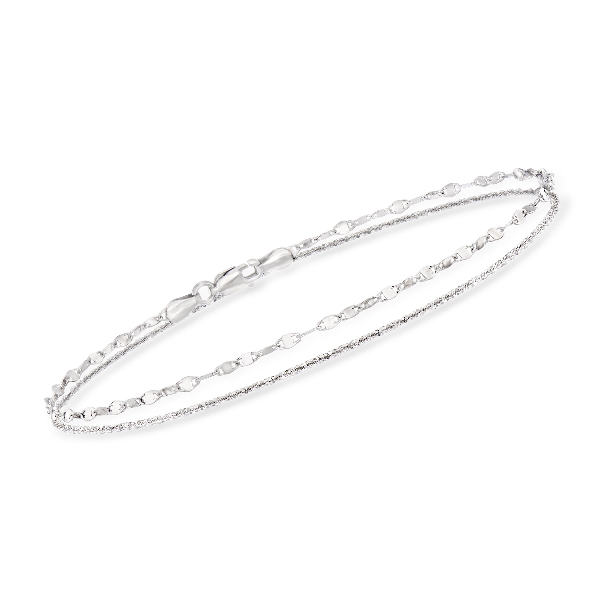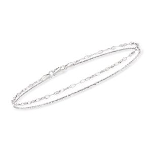 Italian Sterling Silver Dual-Chain Draped Anklet. 10″
