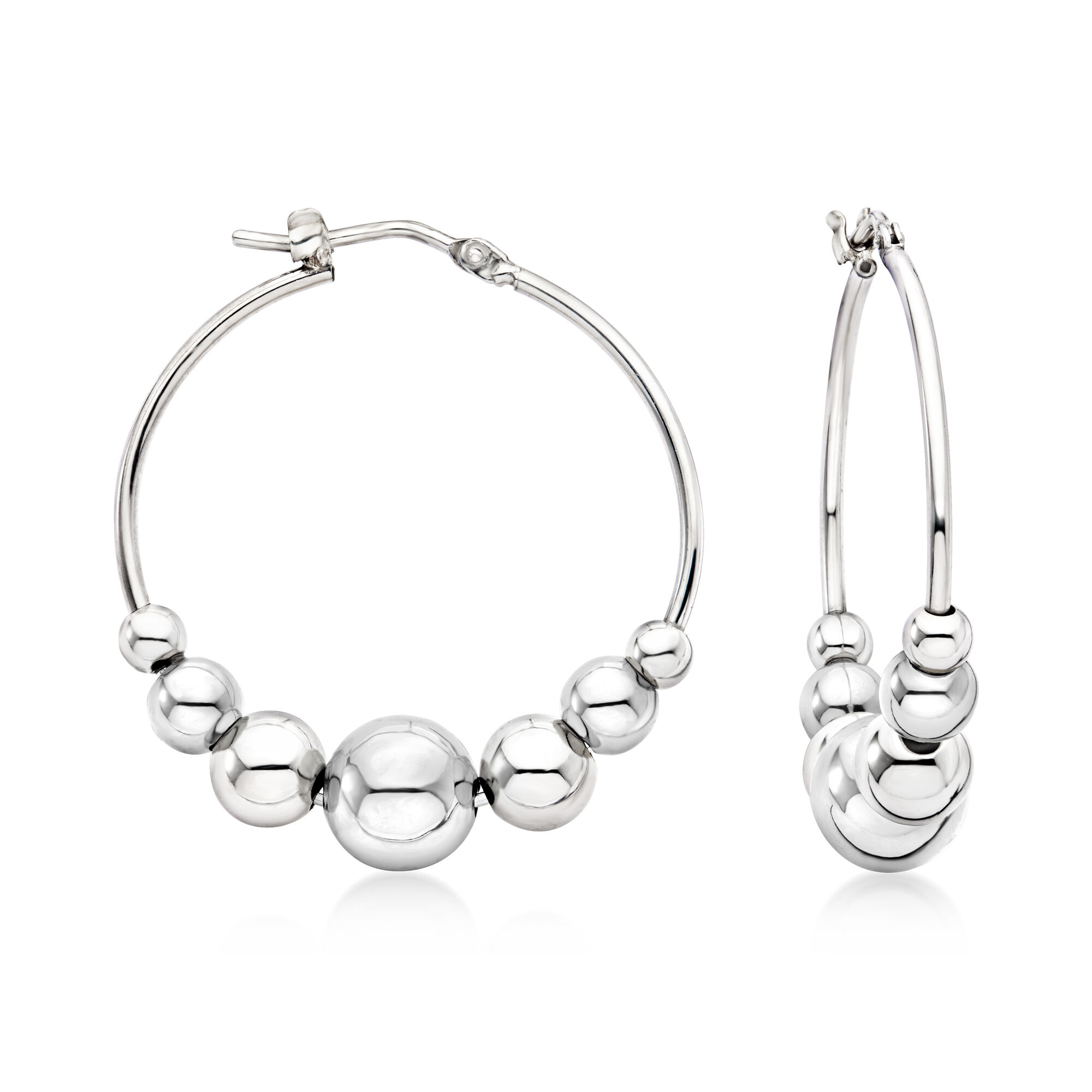 Italian Sterling Silver Graduated Bead Hoop Earrings. 1 1/4″