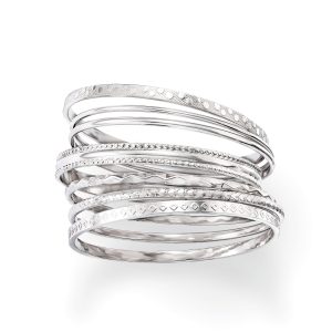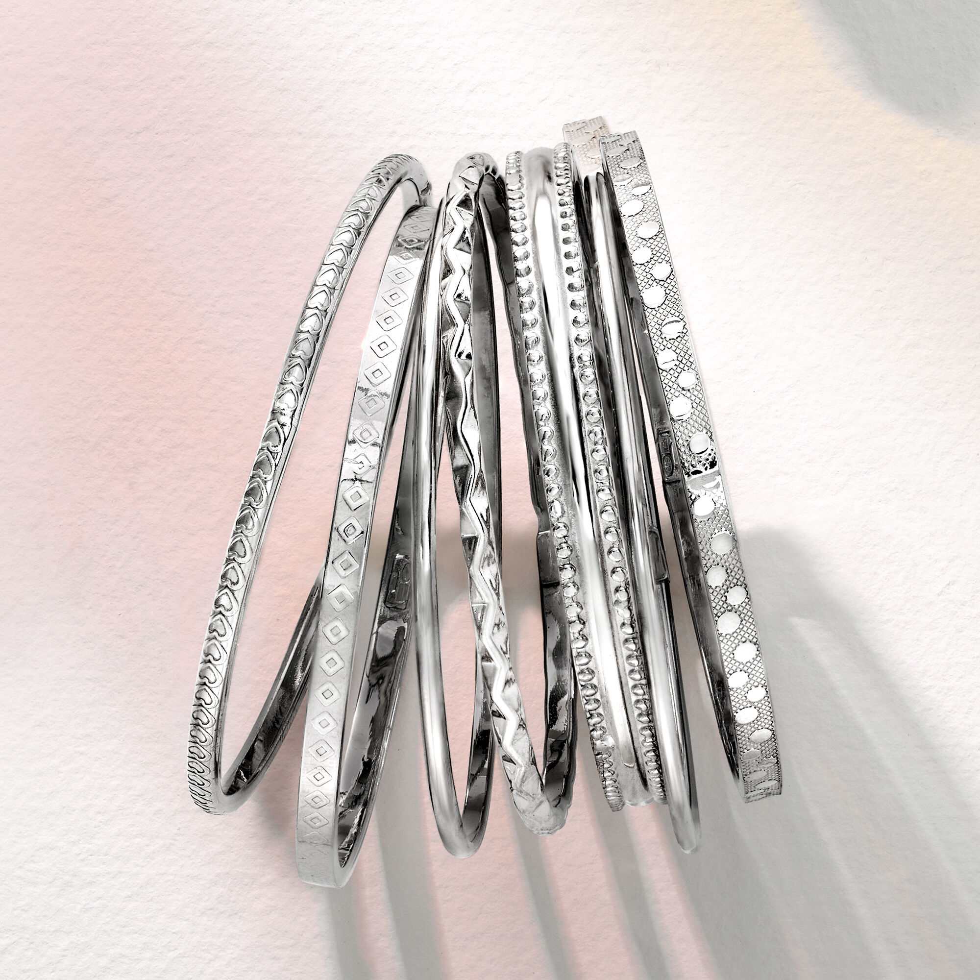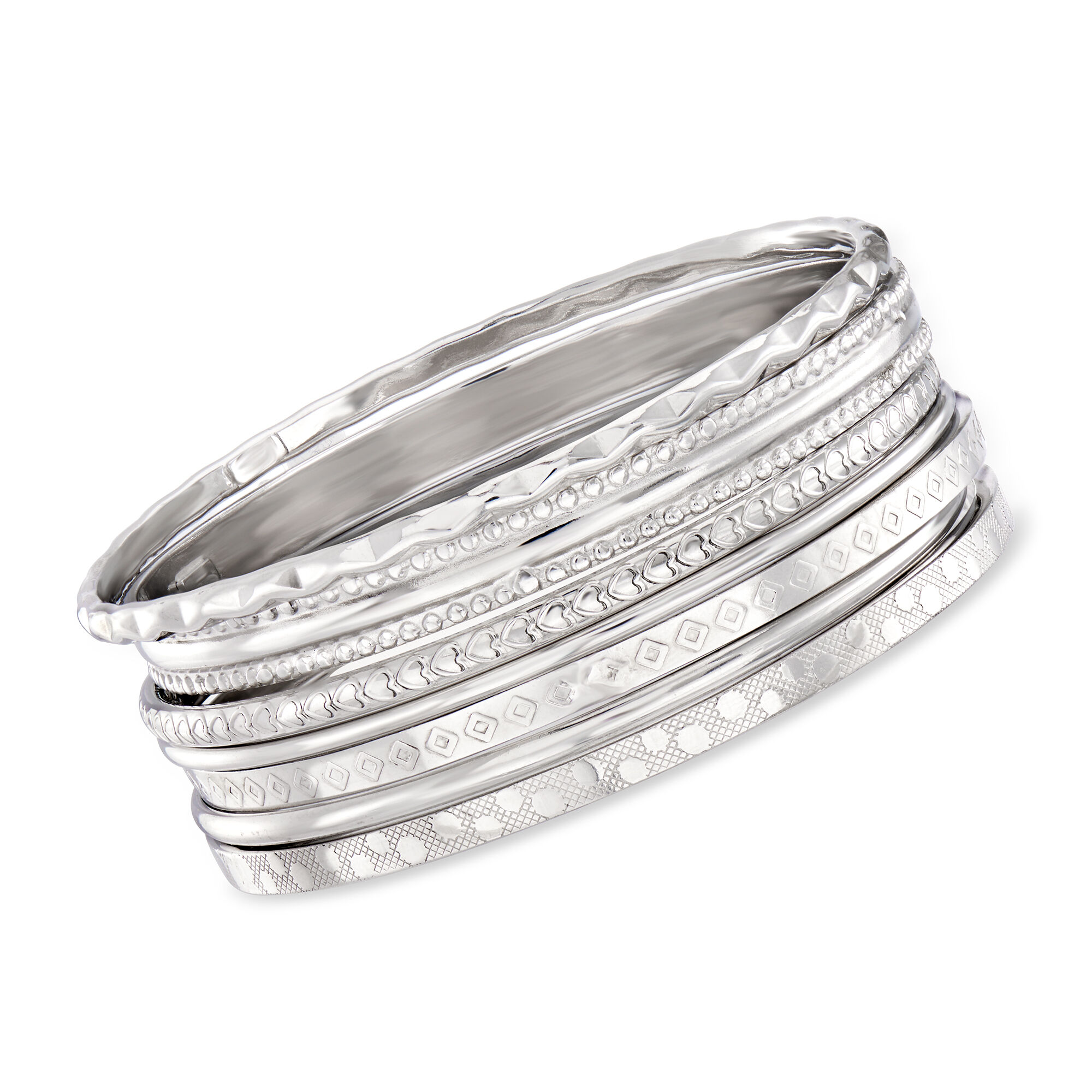 Italian Sterling Silver Jewelry Set: Seven Assorted Textured Bangle Bracelets