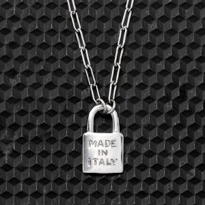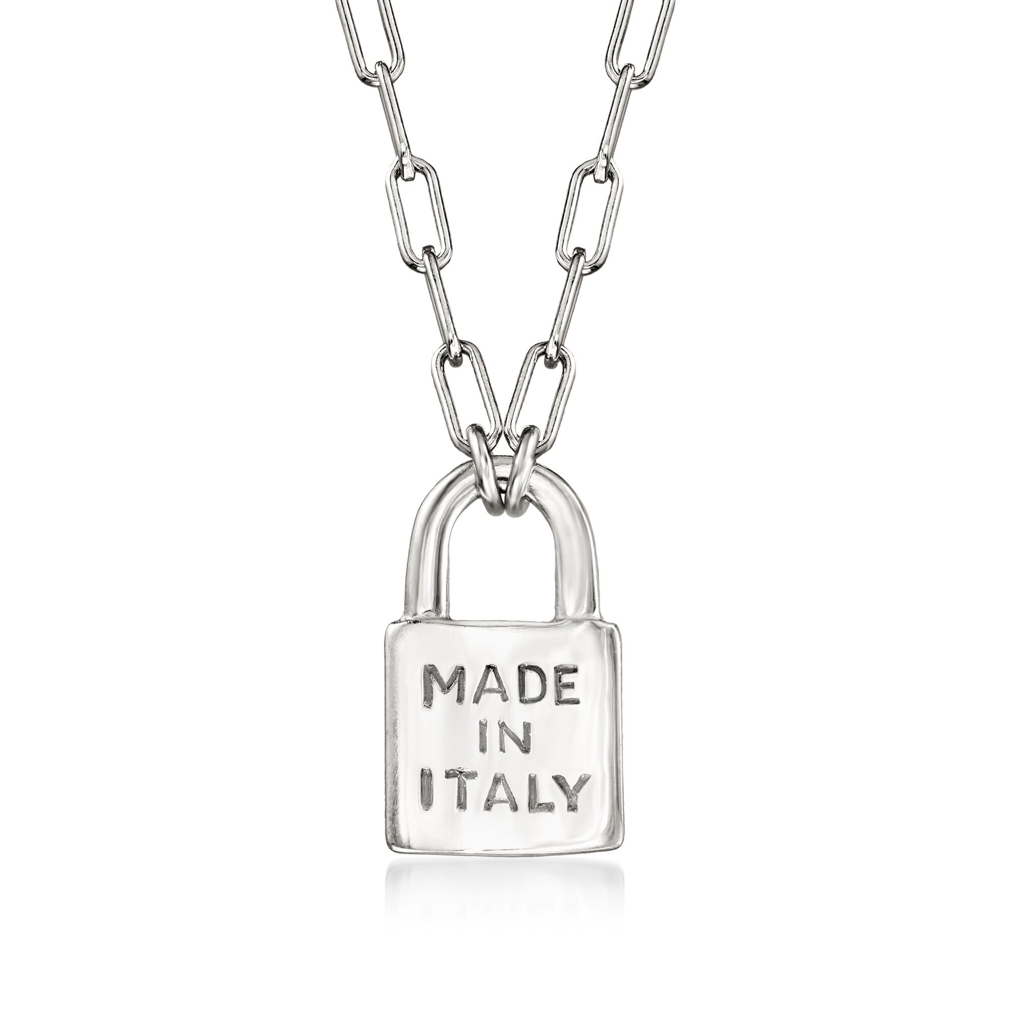 Italian Sterling Silver “Made in Italy” Lock Paper Clip Link Necklace