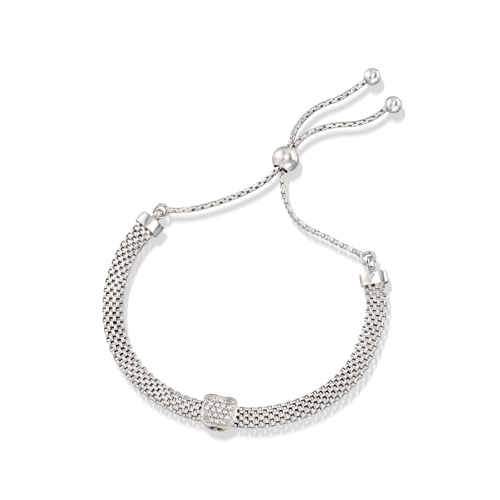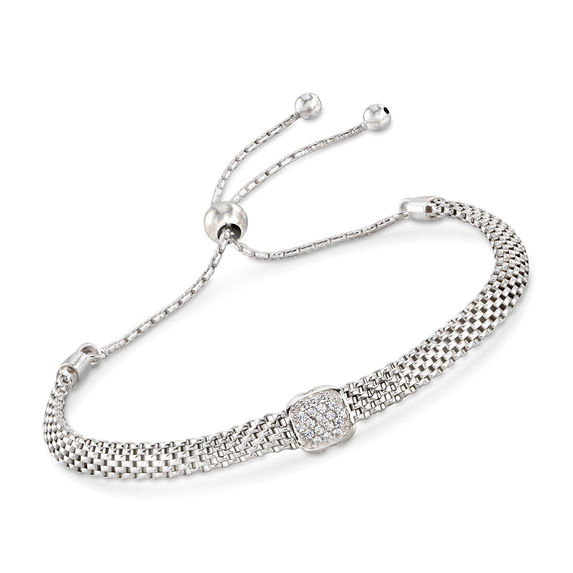 Italian Sterling Silver Mesh Bolo Bracelet with CZ Station