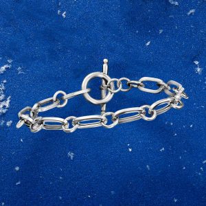 Italian Sterling Silver Paper Clip Link Toggle Bracelet
