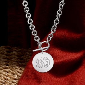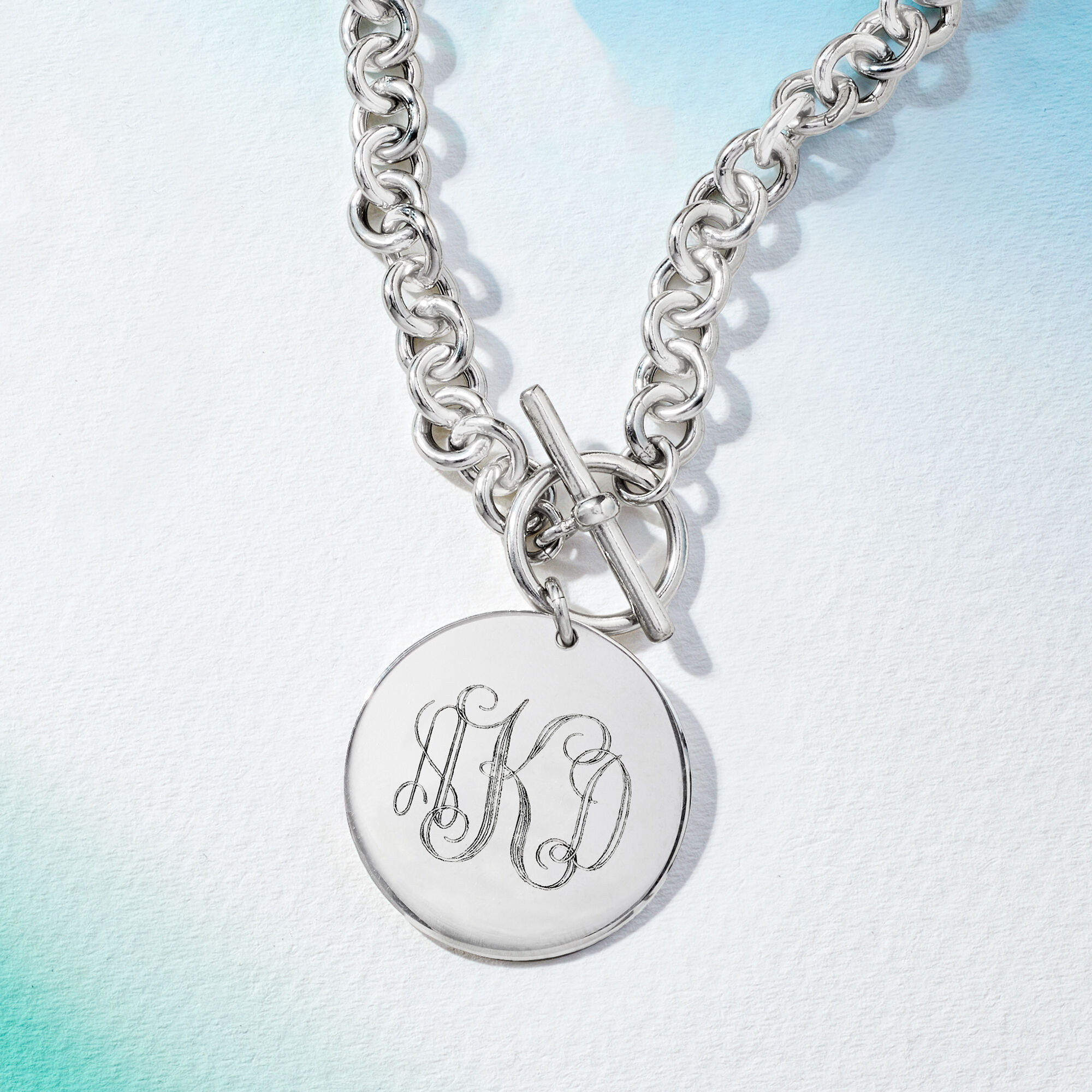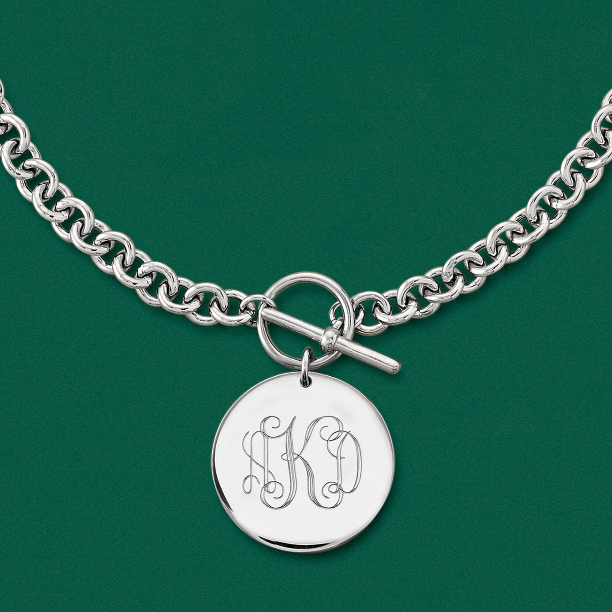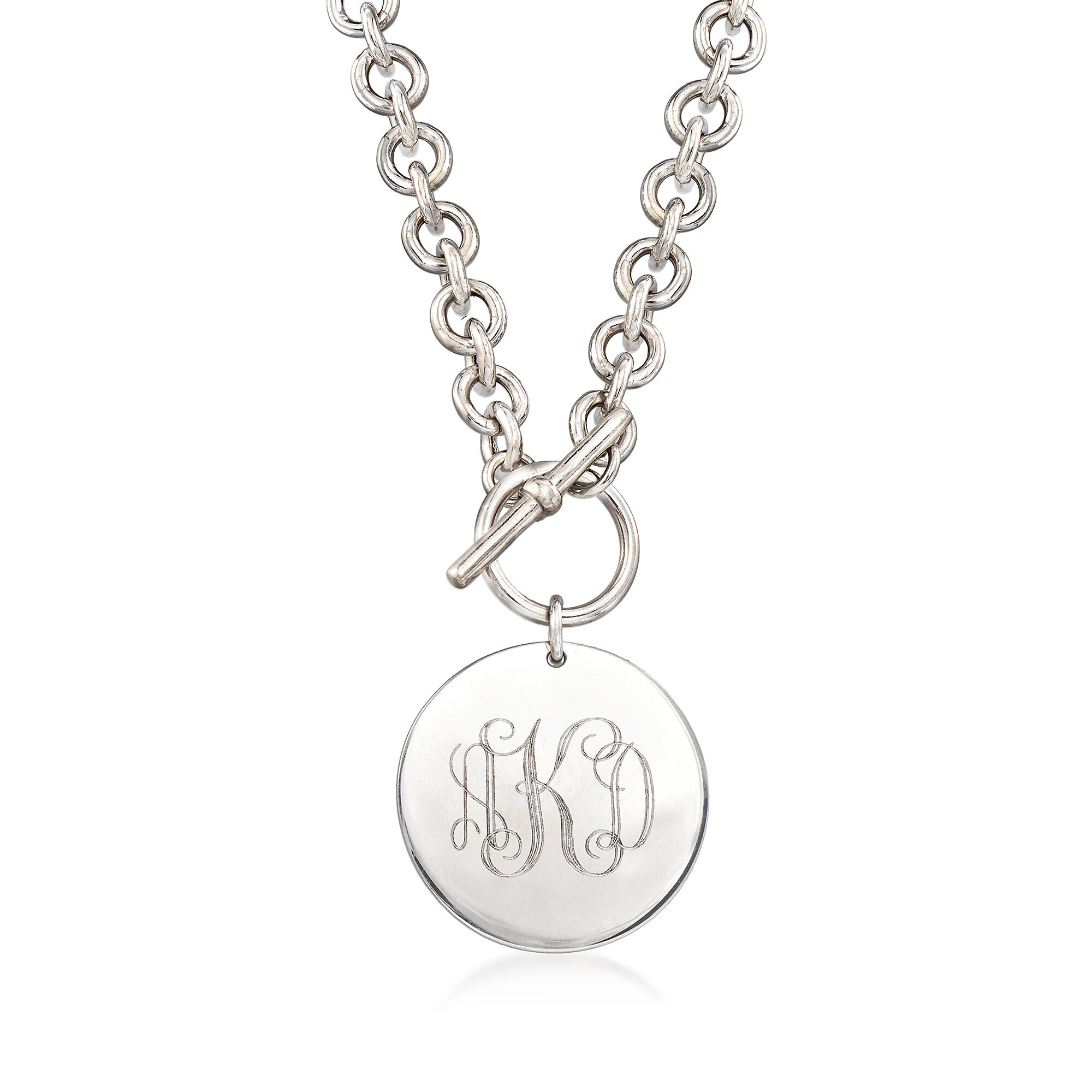 Italian Sterling Silver Personalized Disc Toggle Necklace