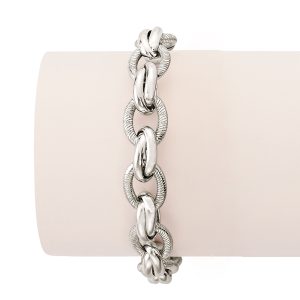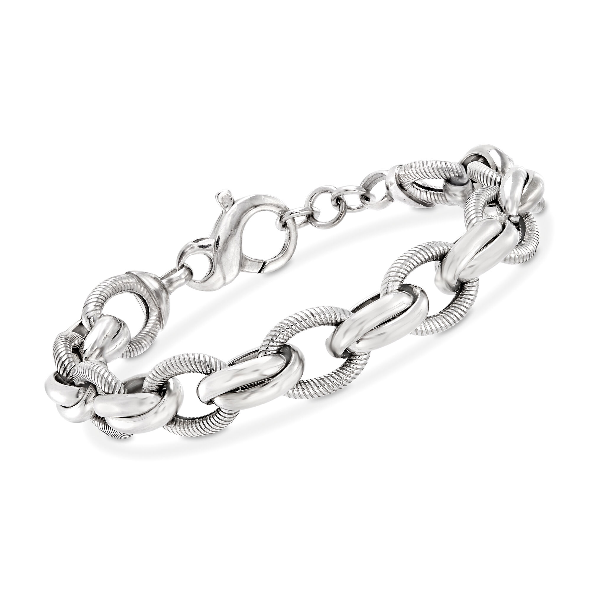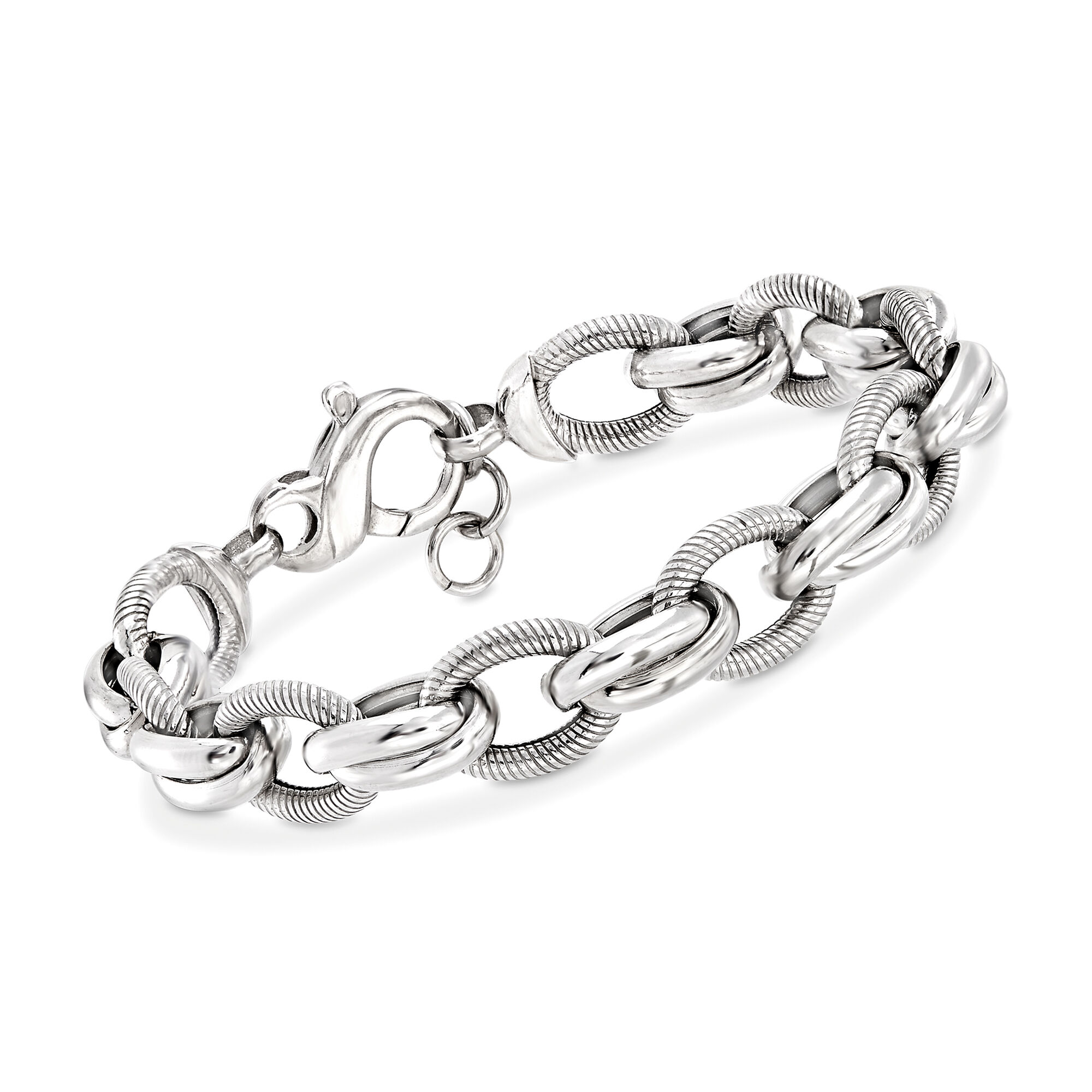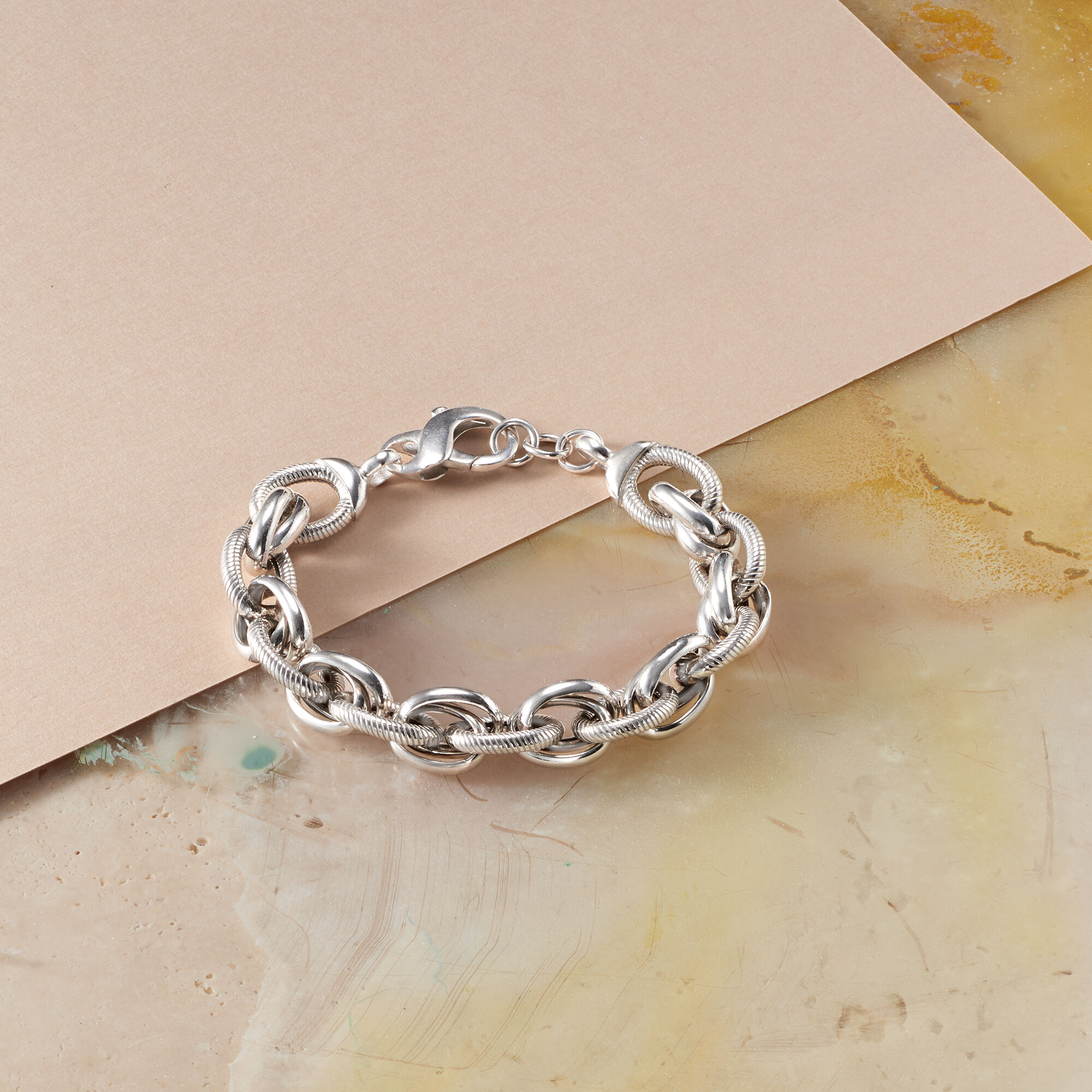 Italian Sterling Silver Textured and Polished Multi-Link Bracelet