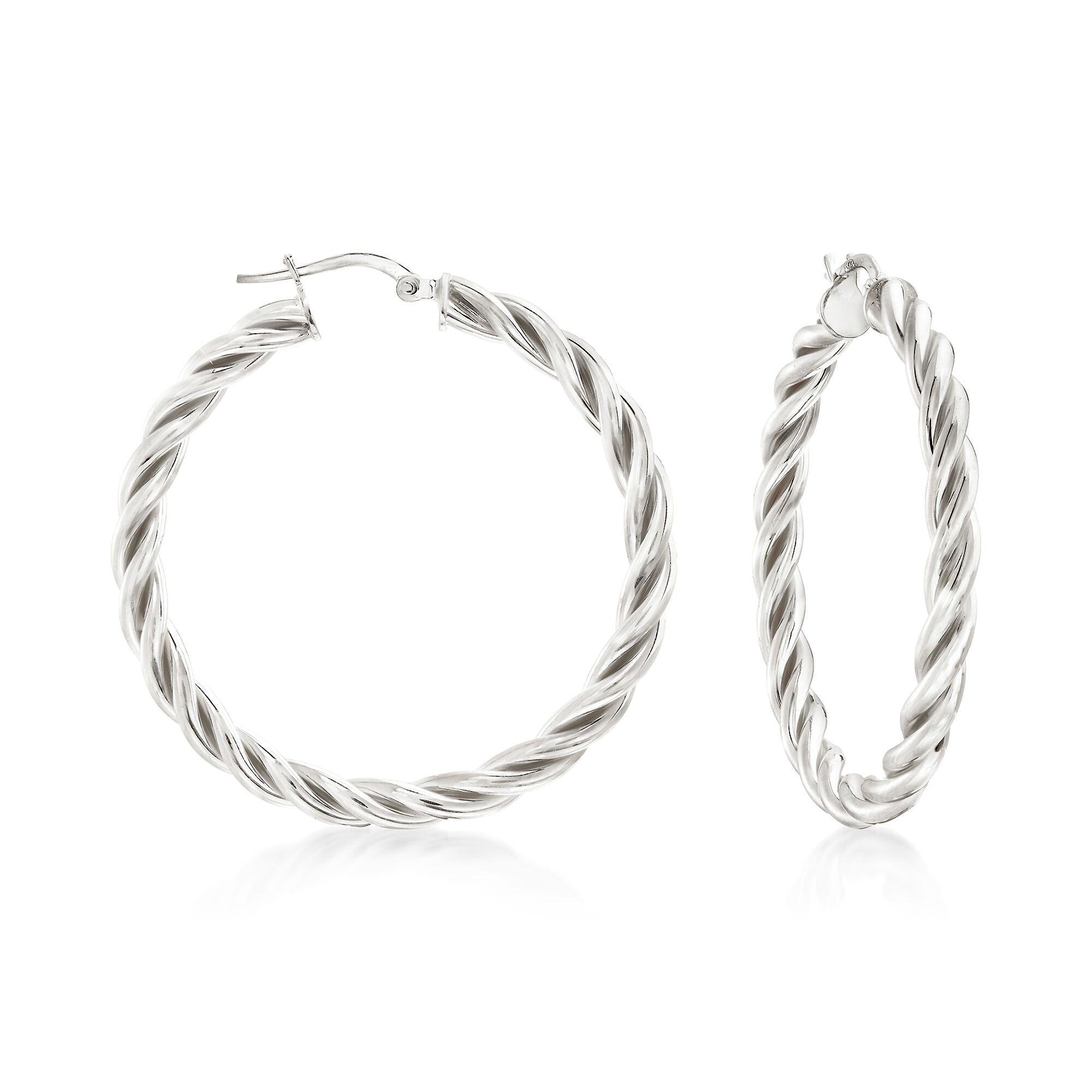 Italian Sterling Silver Twisted Hoop Earrings. 1 1/2″