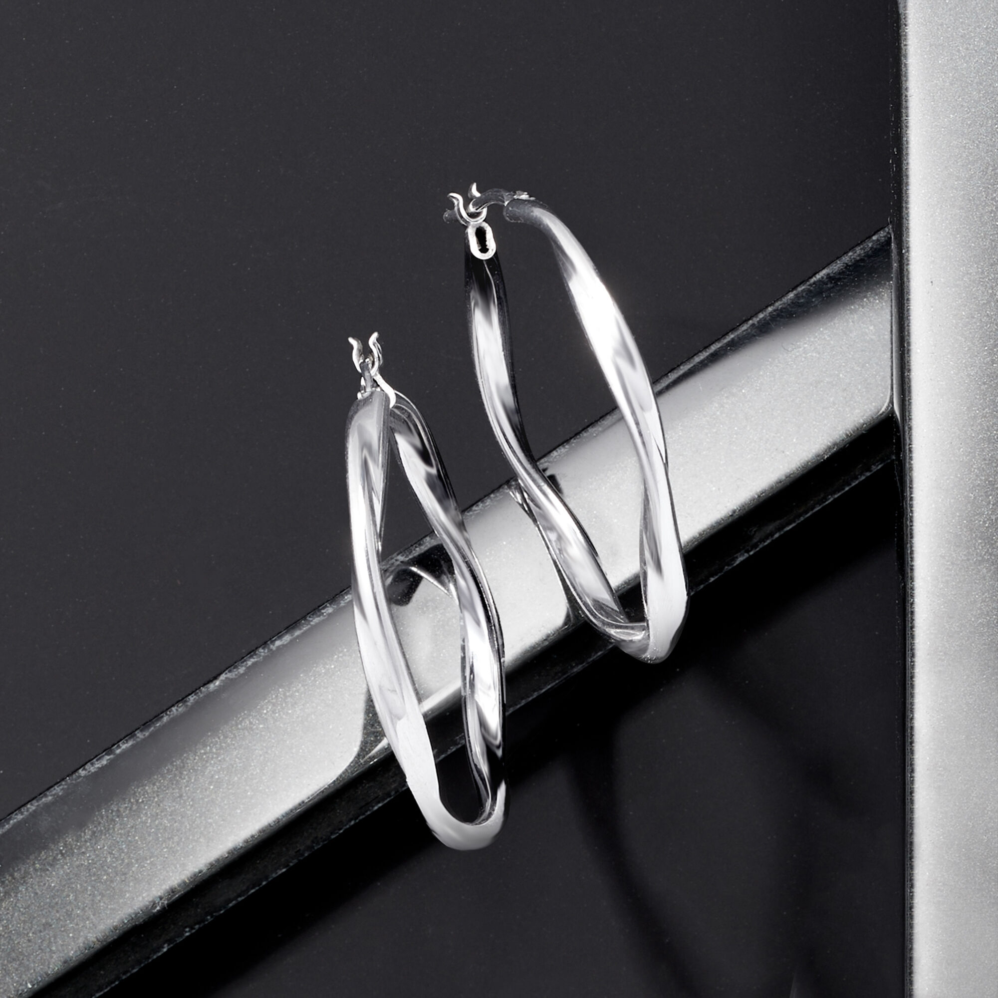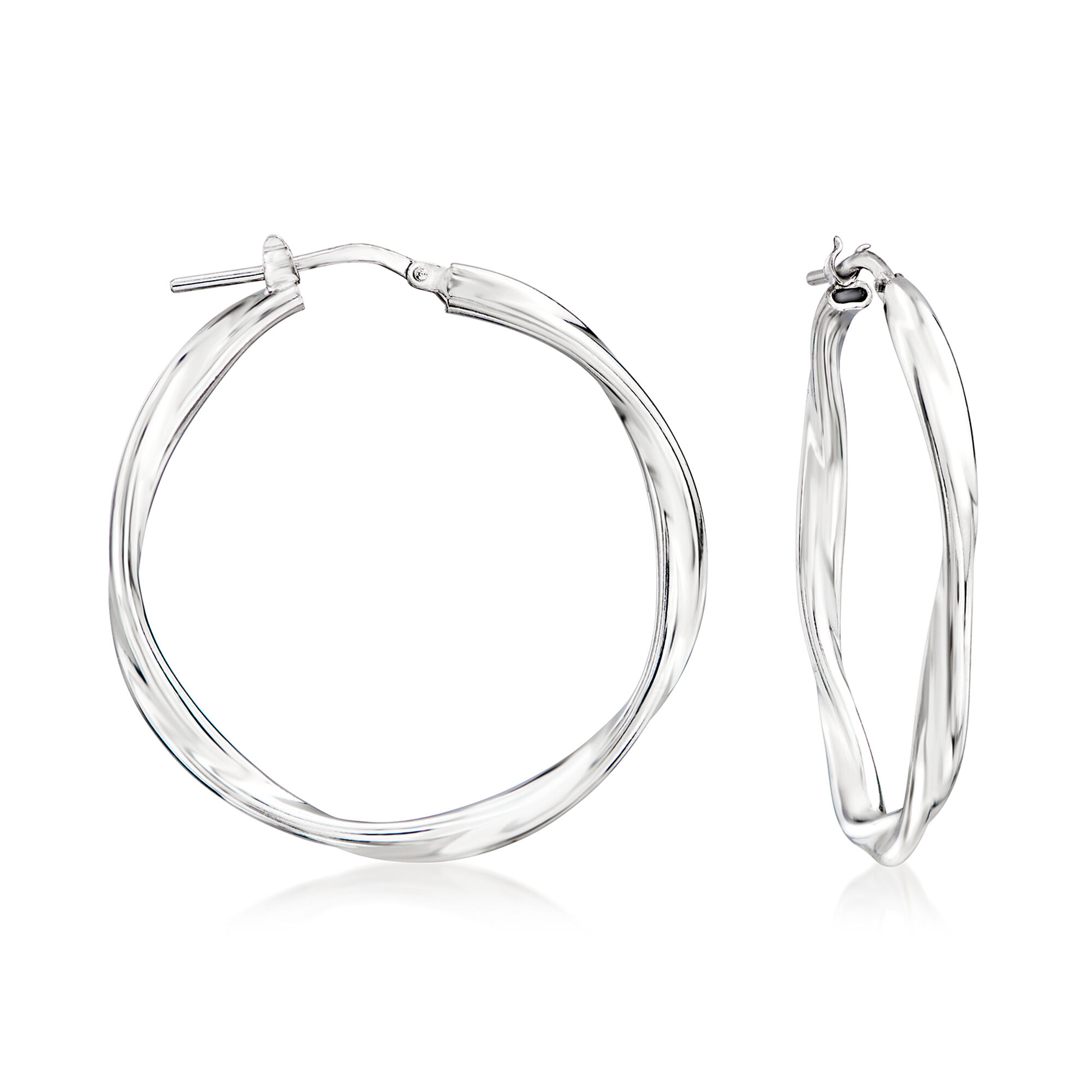 Italian Sterling Silver Twisted Hoop Earrings. 1 3/8″