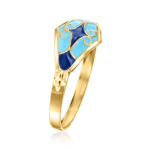 Italian Tonal Blue Enamel Ring in 14kt Yellow Gold