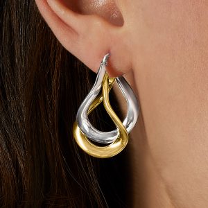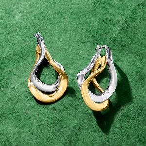 Italian Two-Tone Sterling Silver Curved Double-Hoop Earrings. 1 1/4″