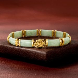 Jade “Good Fortune” Bracelet in 18kt Gold Over Sterling