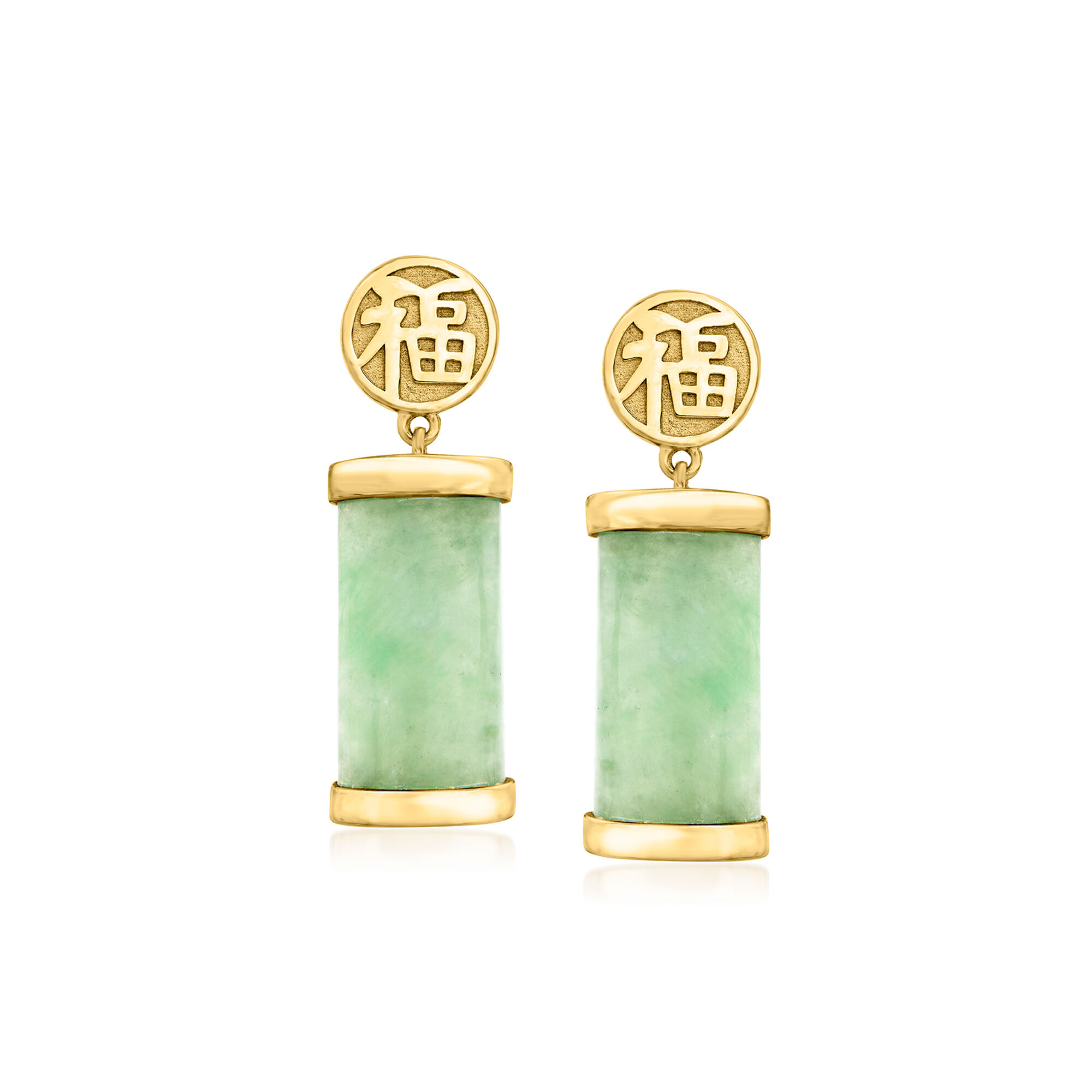 Jade “Good Fortune” Drop Earrings in 18kt Gold Over Sterling