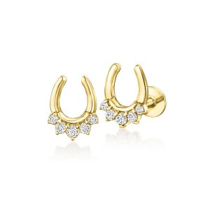 Lab-Grown Diamond Horseshoe Flat-Back Stud Earrings in 14kt Yellow Gold