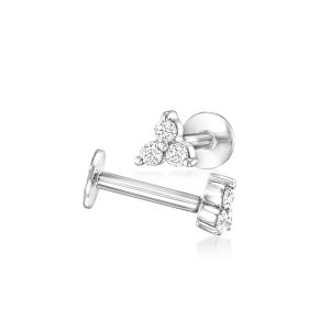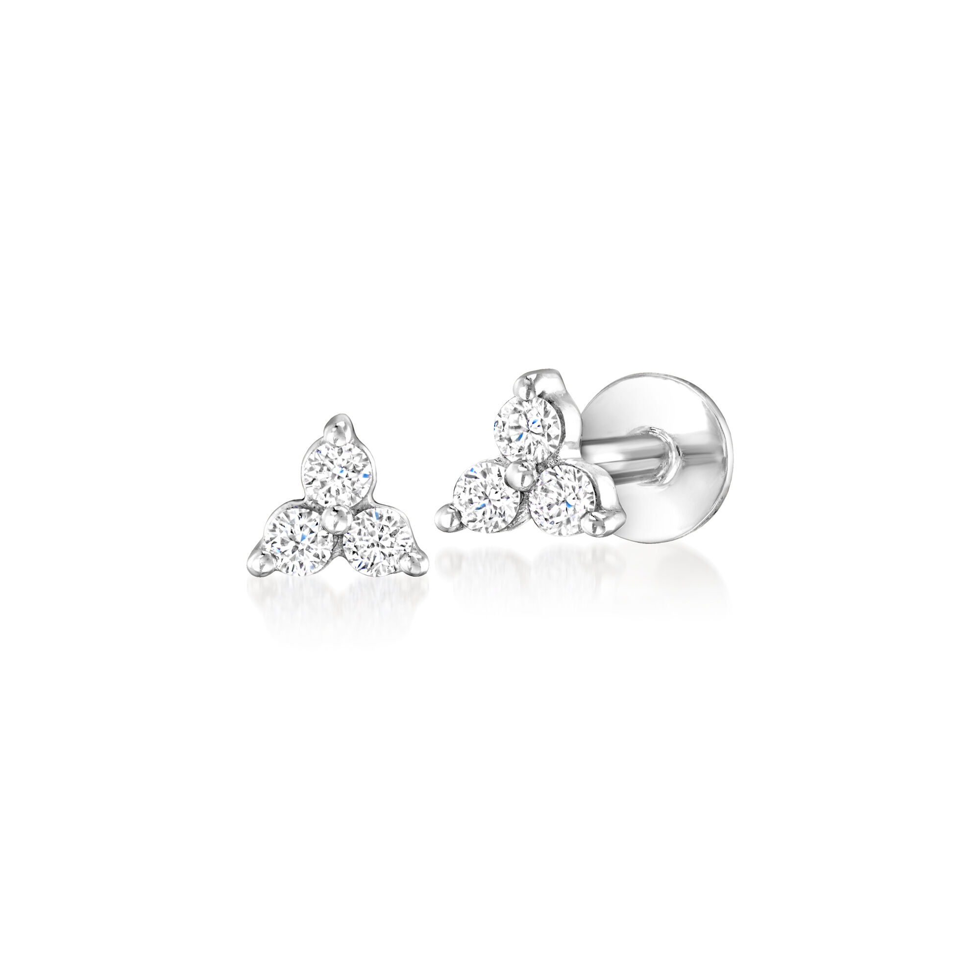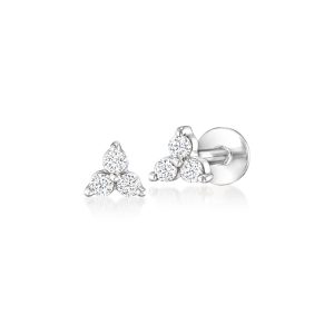 Lab-Grown Diamond Three-Stone Flat-Back Stud Earrings in 14kt White Gold