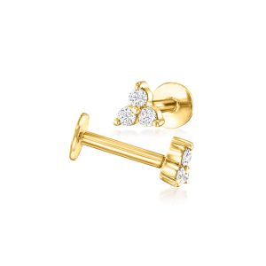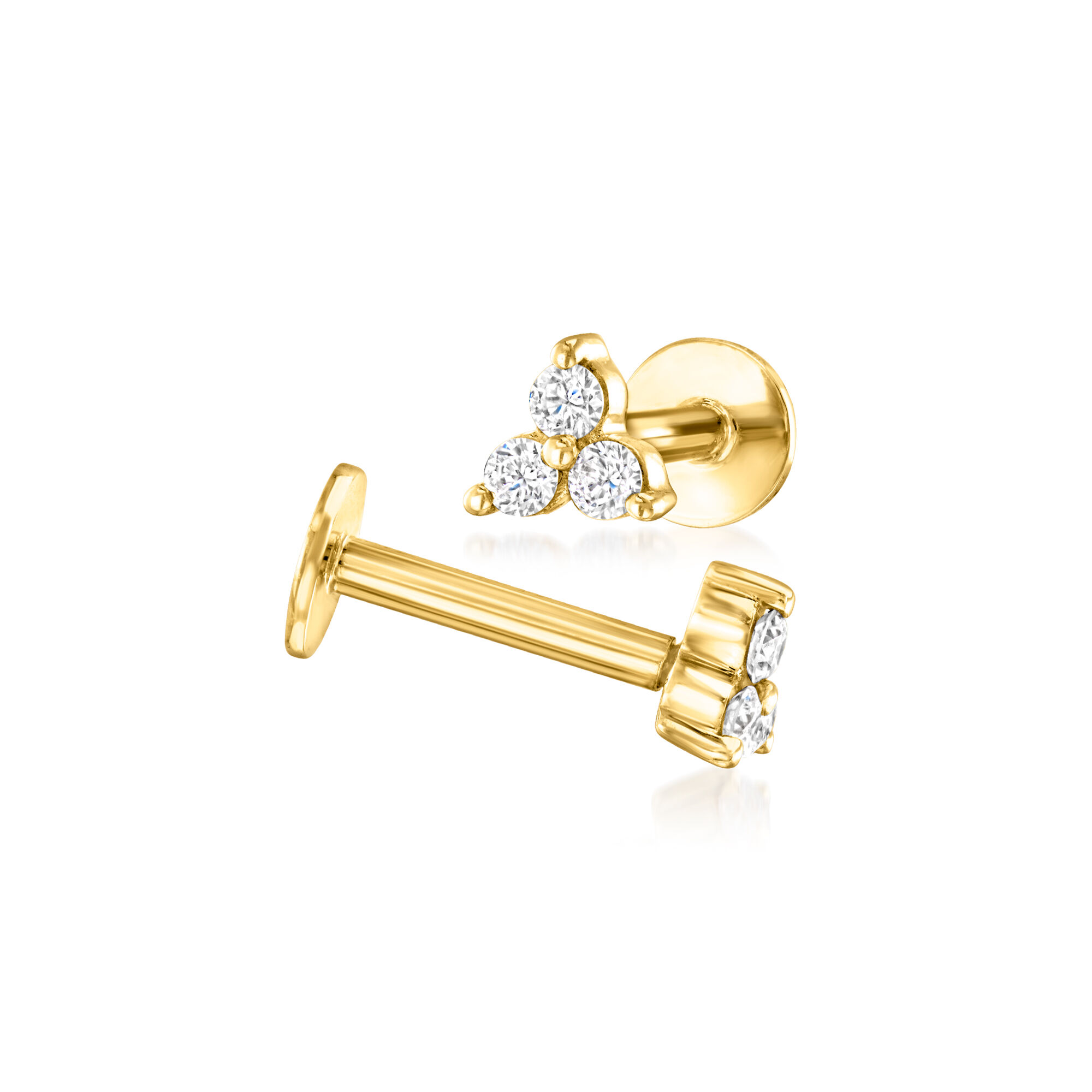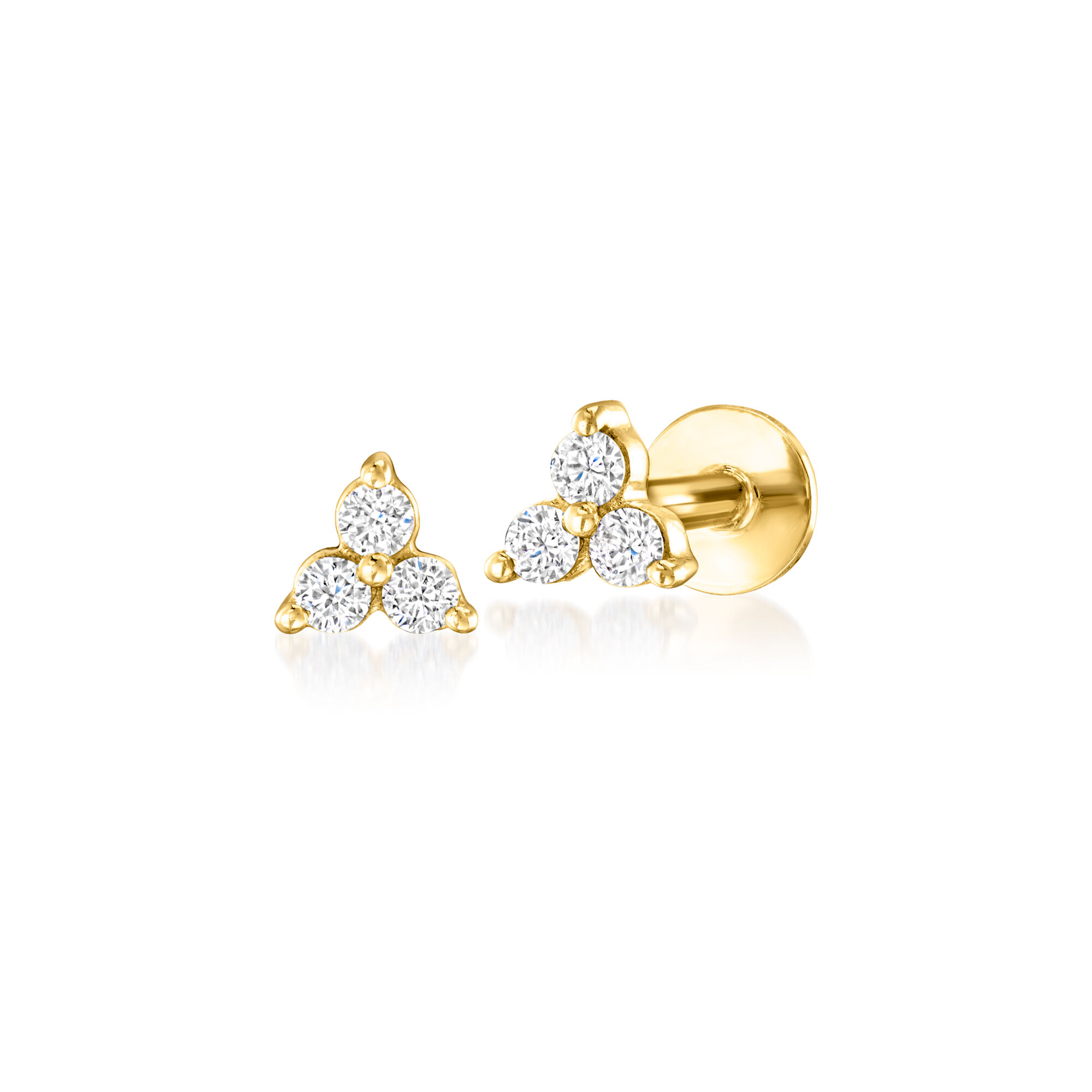Diamond Three-Stone Flat-Back Stud Earrings in 14kt Yellow Gold