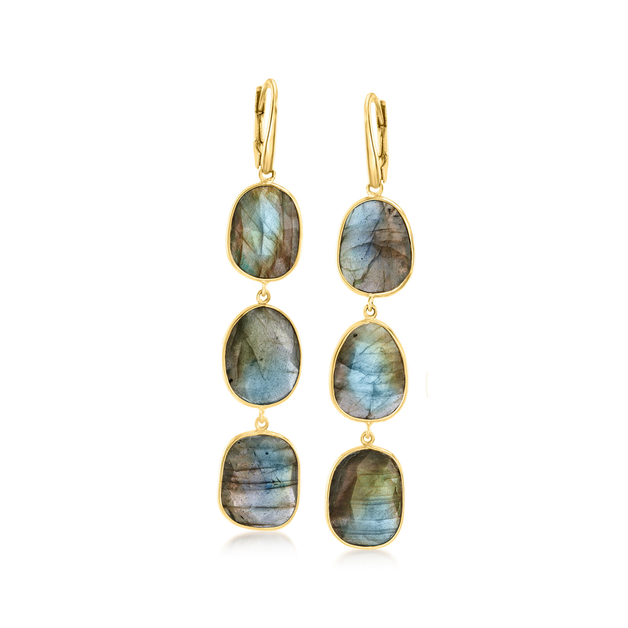 Labradorite Triple-Drop Earrings in 18kt Gold Over Sterling